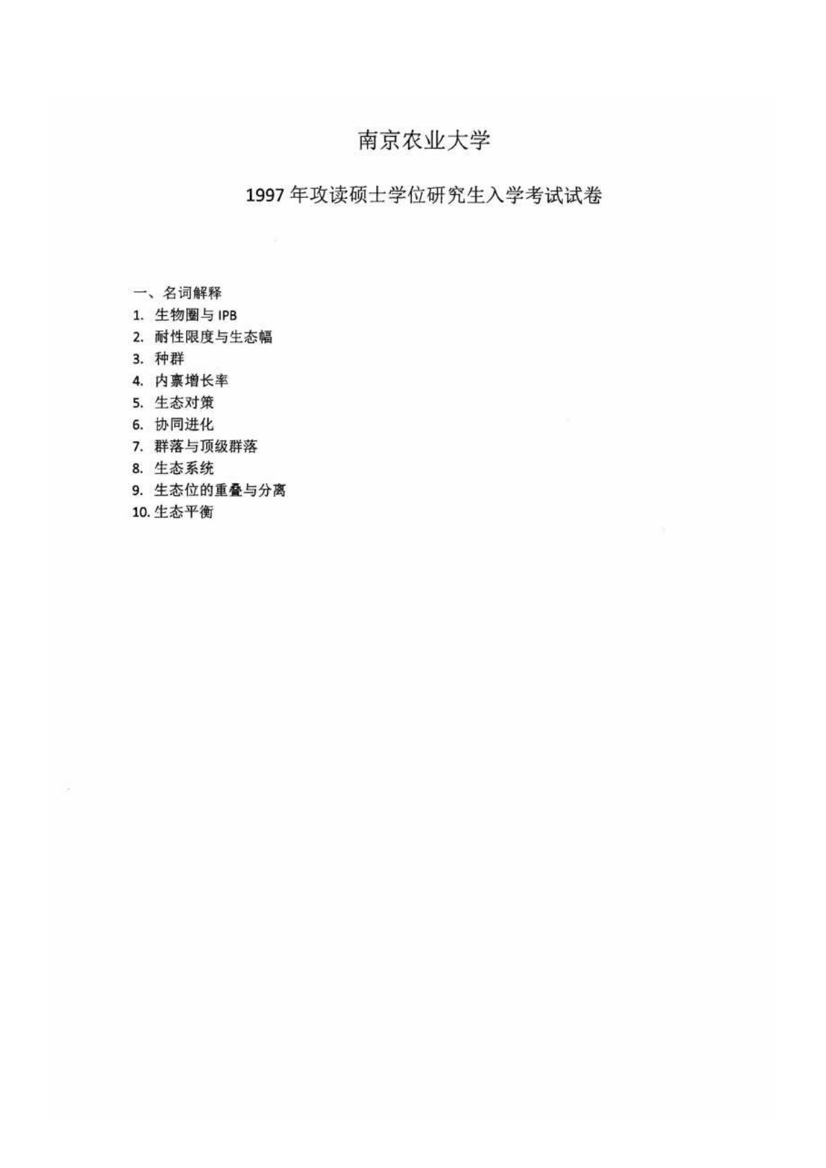 南京农业大学806普通生态学1997年真题