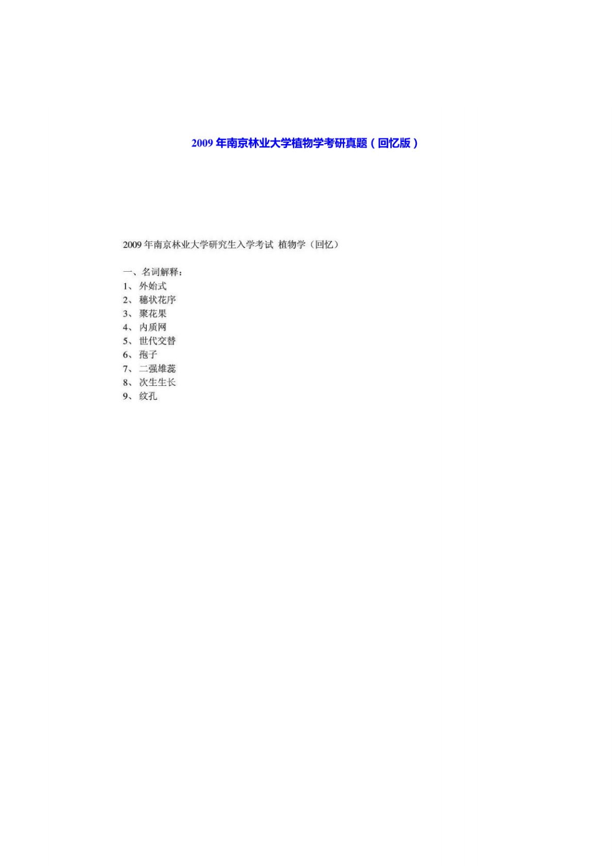 南京林业大学345林业基础知识综合植物生理学2009年真题回忆版1