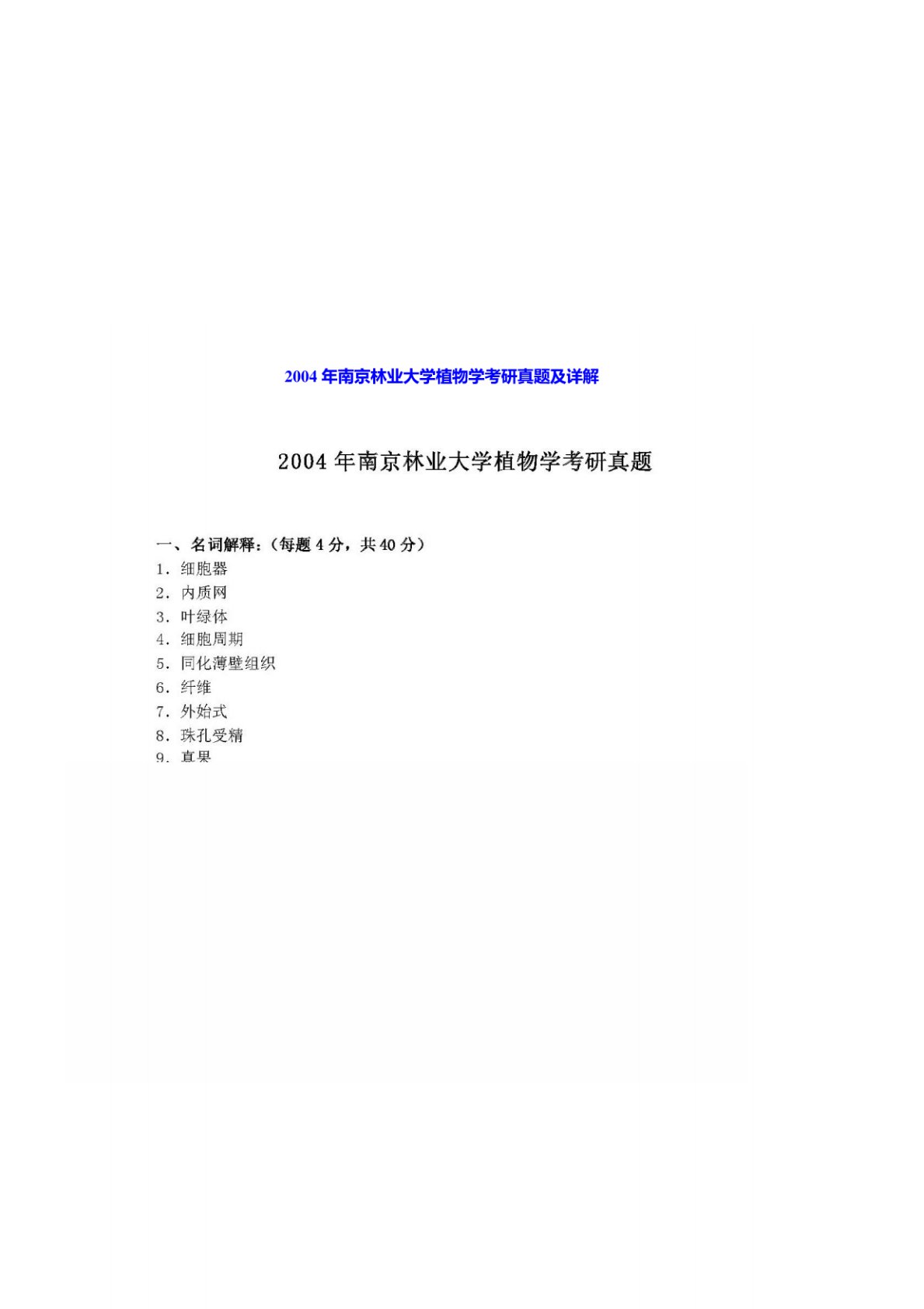南京林业大学345林业基础知识综合植物生理学2004年真题2