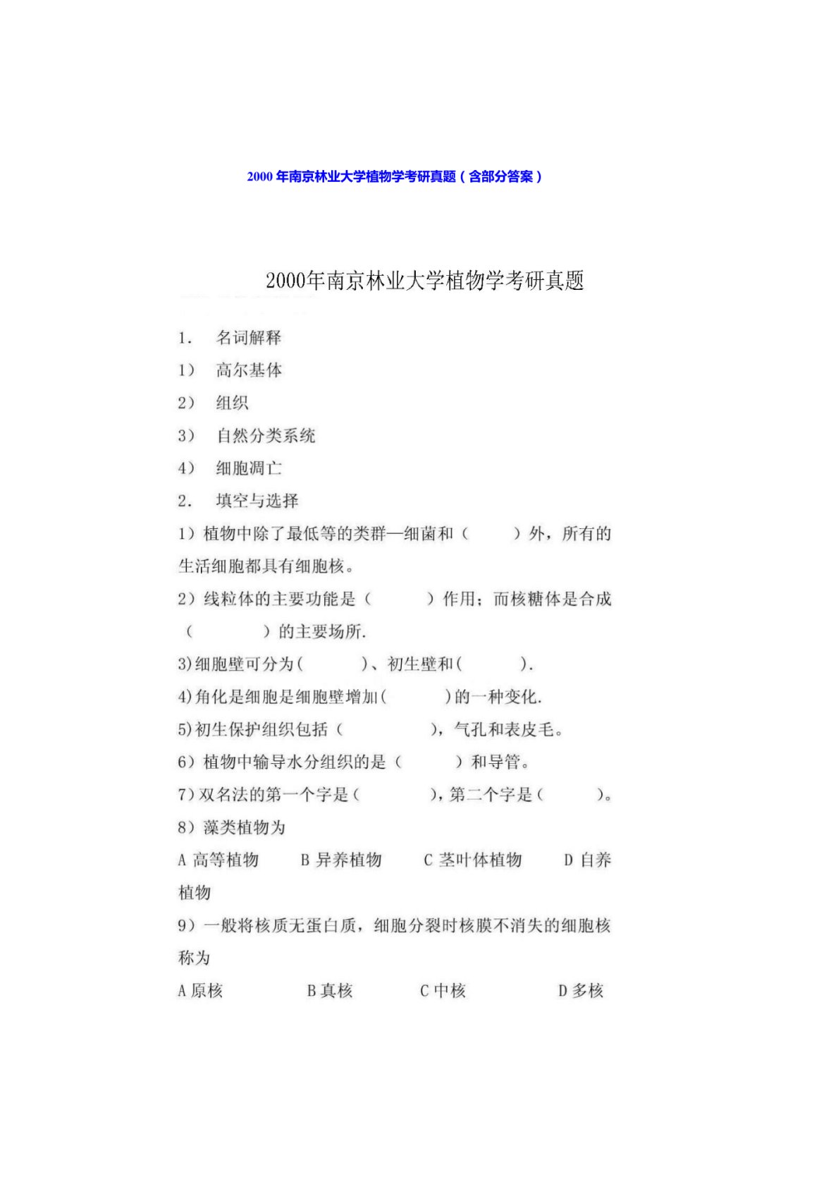 南京林业大学345林业基础知识综合植物生理学2000年真题1