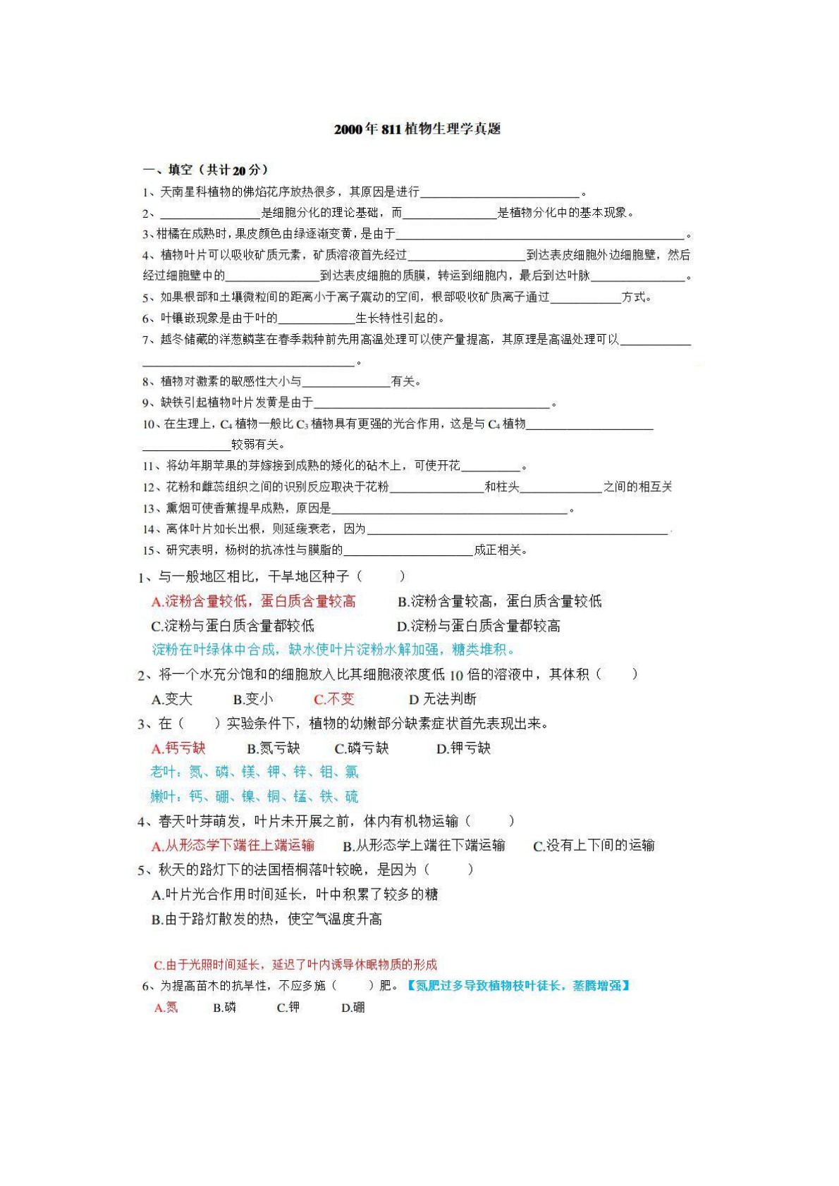 南京林业大学345林业基础知识综合植物生理学2000年真题