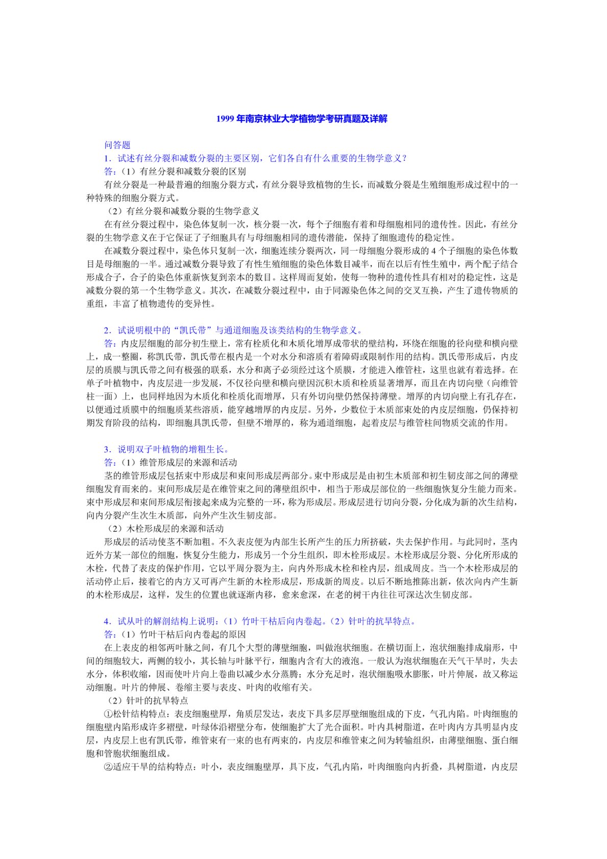 南京林业大学345林业基础知识综合植物生理学1999年真题答案