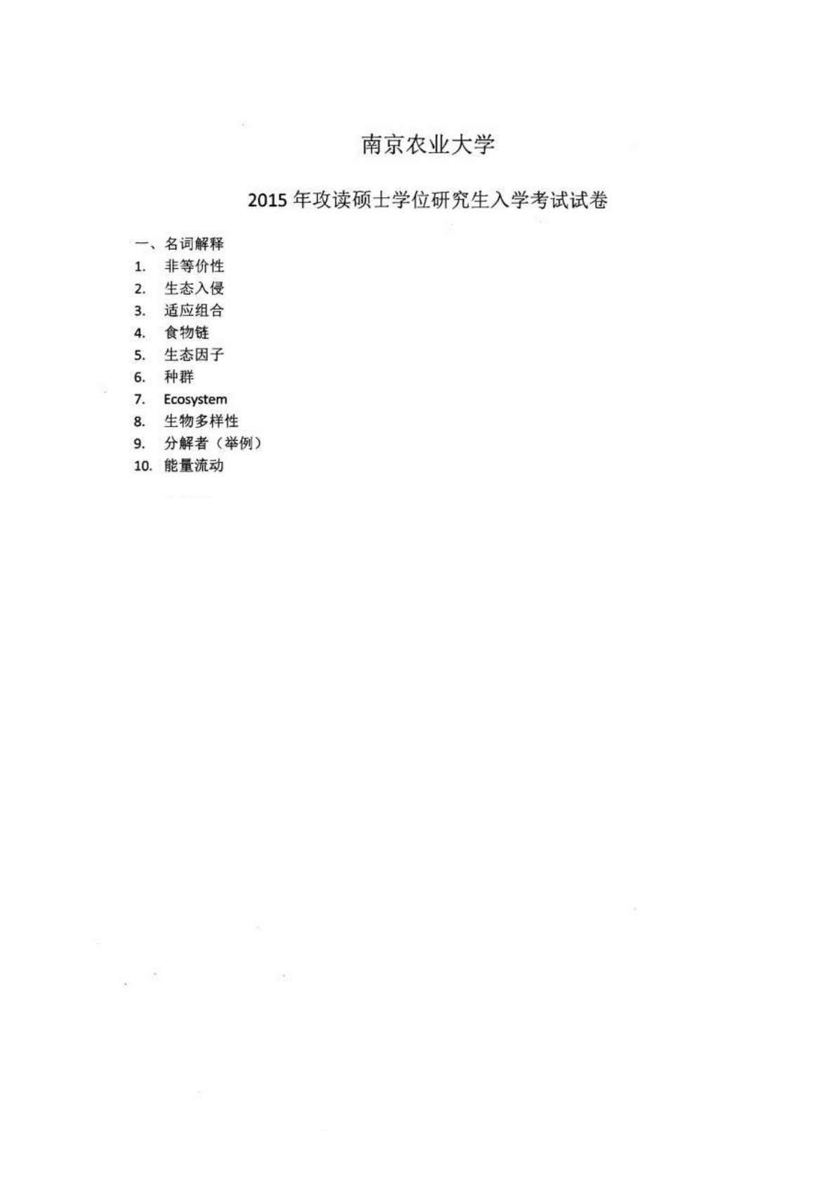 南京农业大学806普通生态学2015年真题