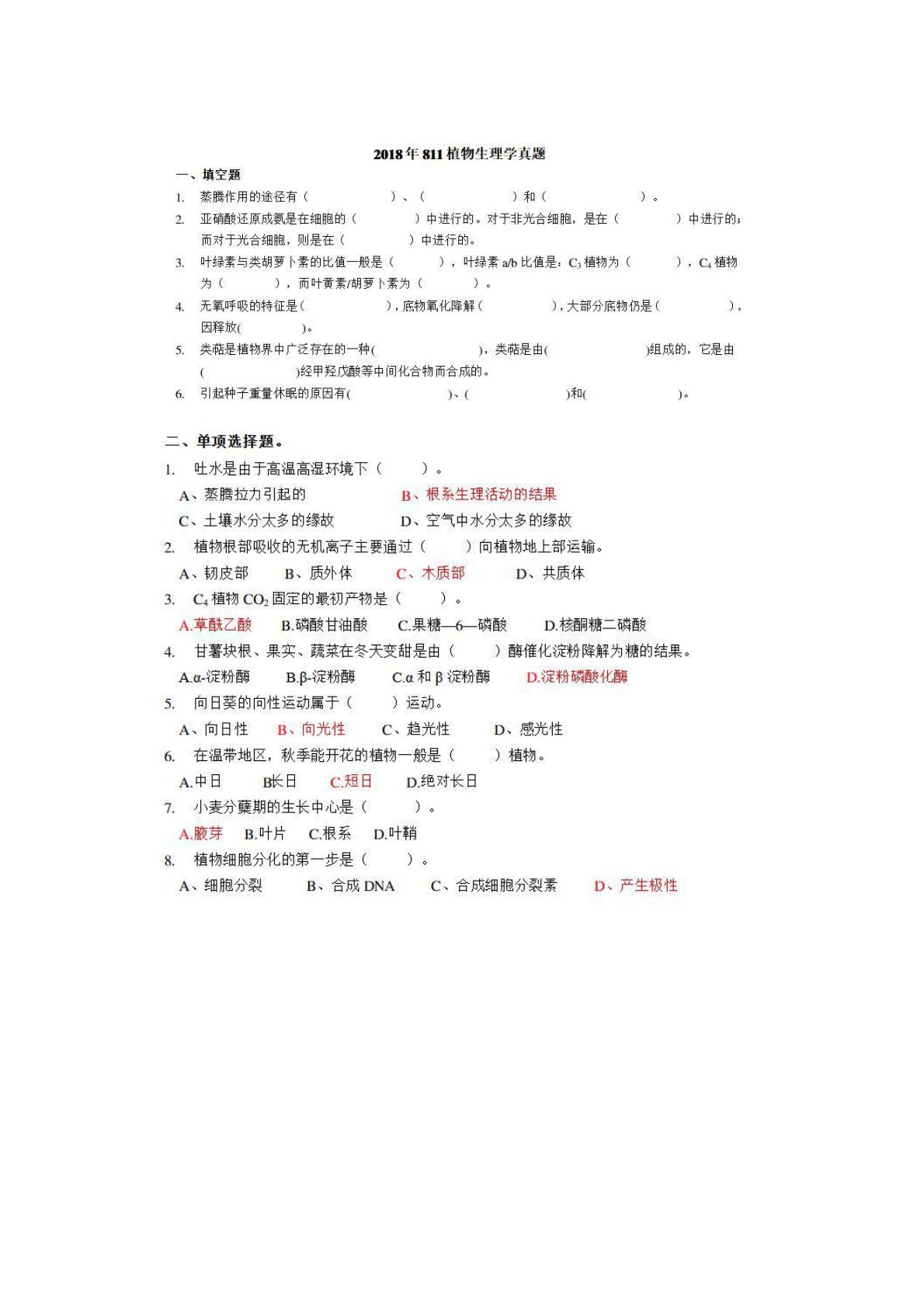 南京林业大学345林业基础知识综合植物生理学2018年真题