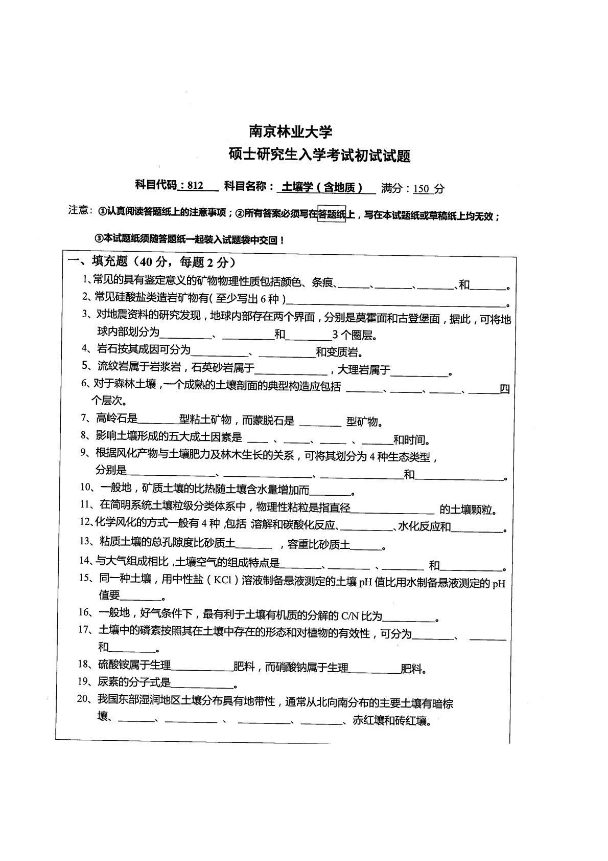南京林业大学345林业基础知识综合土壤学2015年真题