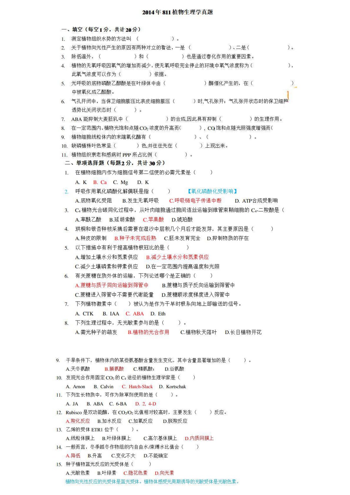 南京林业大学345林业基础知识综合植物生理学2014年真题1