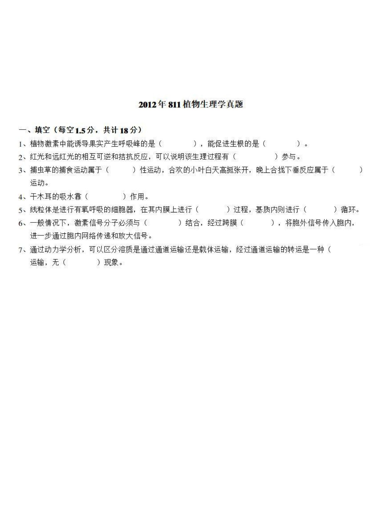 南京林业大学345林业基础知识综合植物生理学2012年真题1