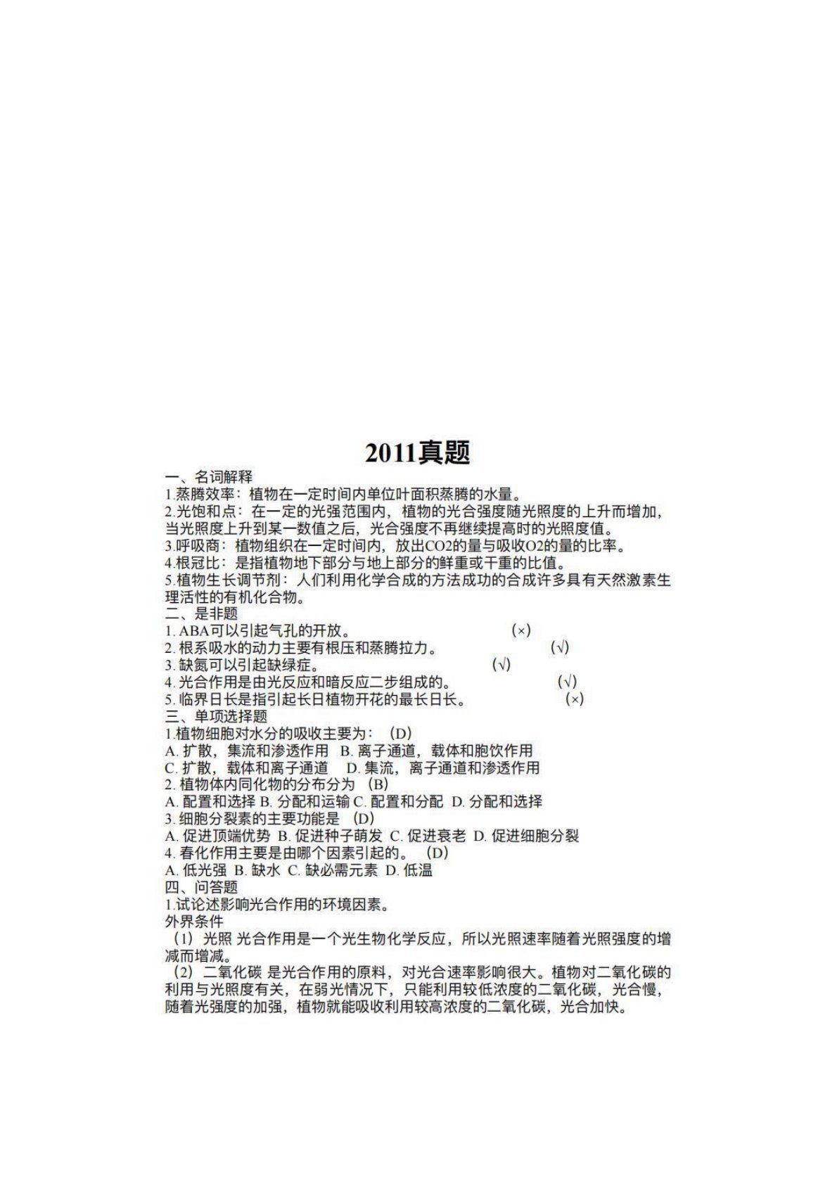 南京林业大学345林业基础知识综合植物生理学2011年真题