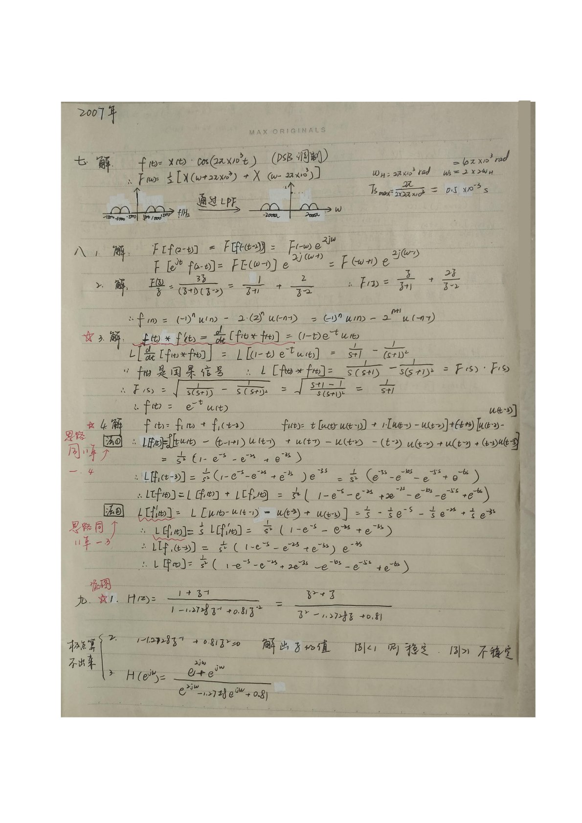 内蒙古大学869通信与系统2007年真题答案手写版1