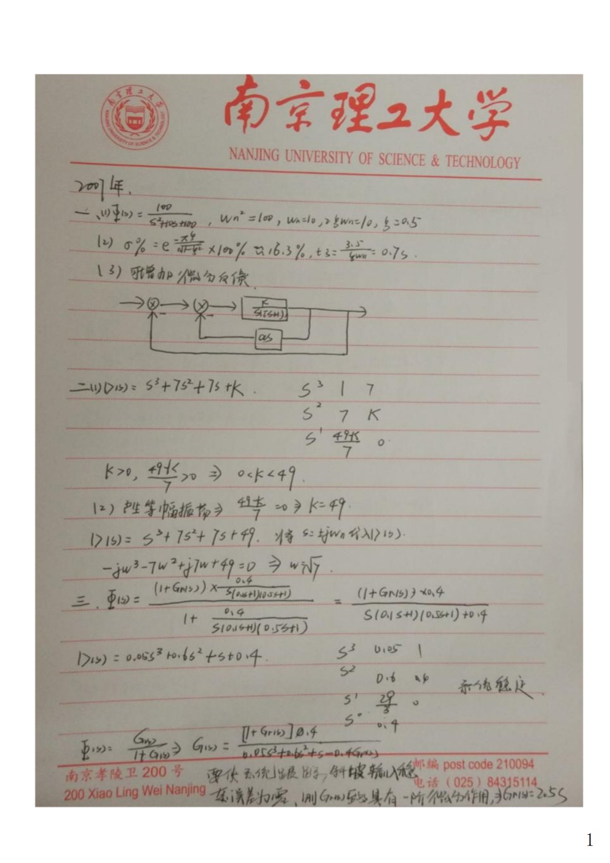 北京工业大学822信息与系统2021年真题答案VIP专享