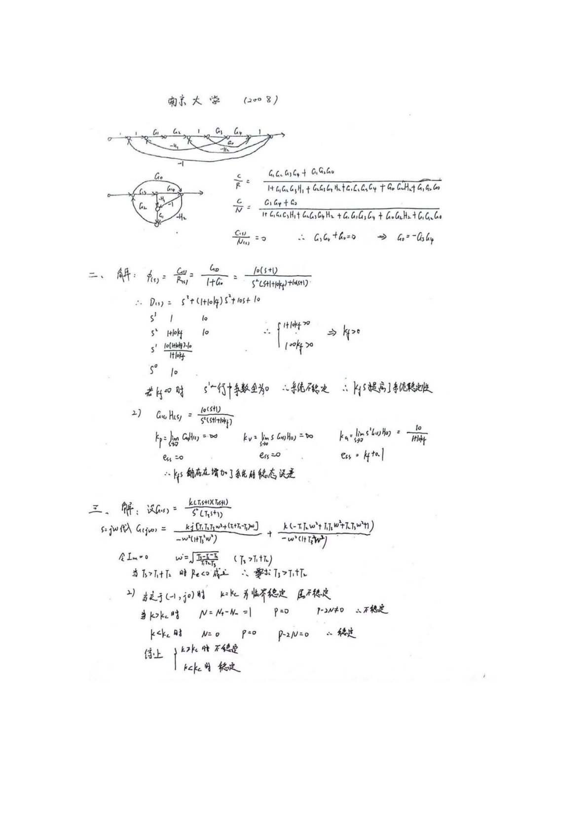 南京大学961自动控制原理(经典60%、现代40%)2008年真题答案手写版