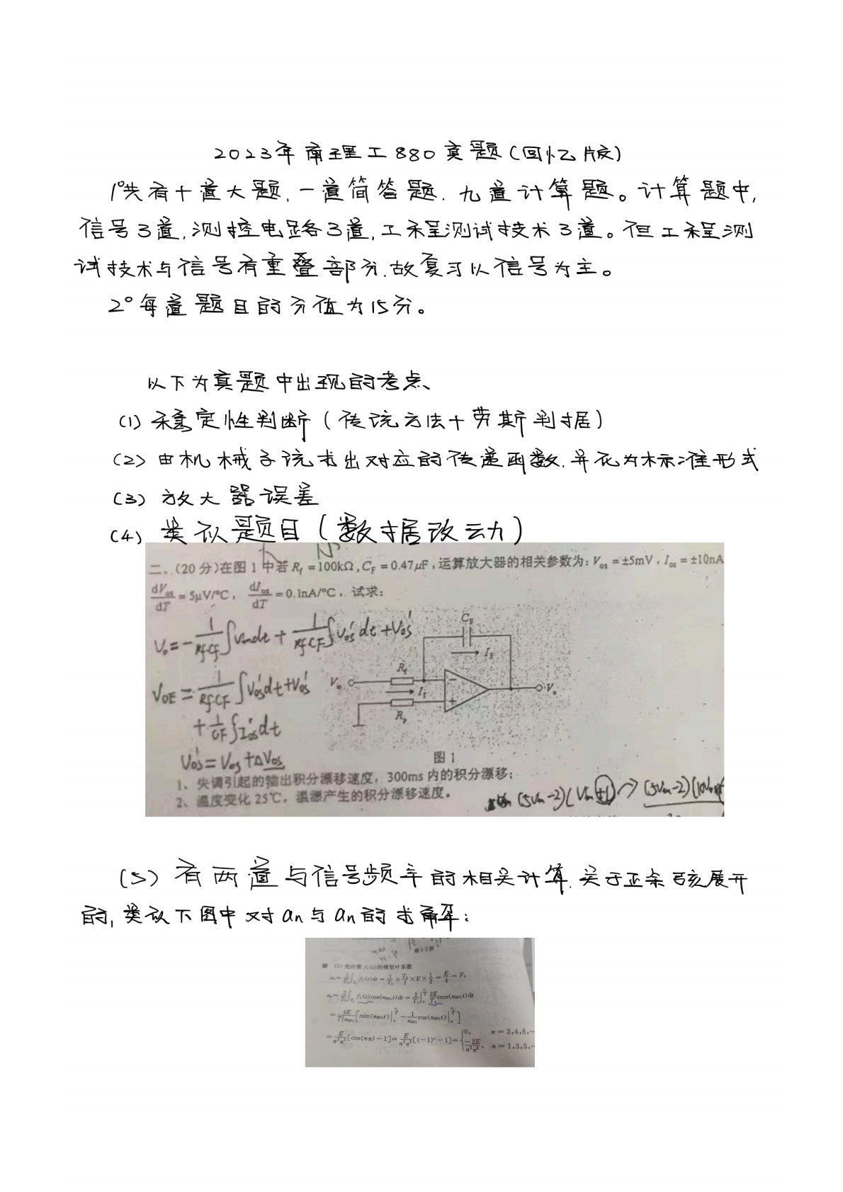 南京理工大学880信号与测控系统2023年真题回忆版(手写版)