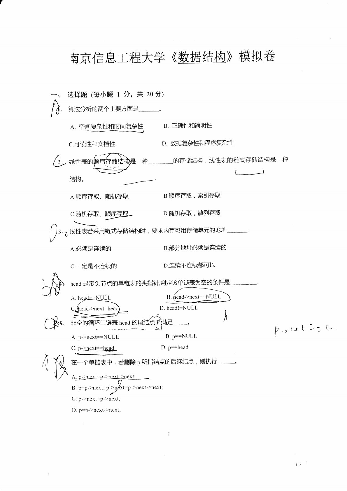 南京信息工程大学816数据结构2021年模拟试卷