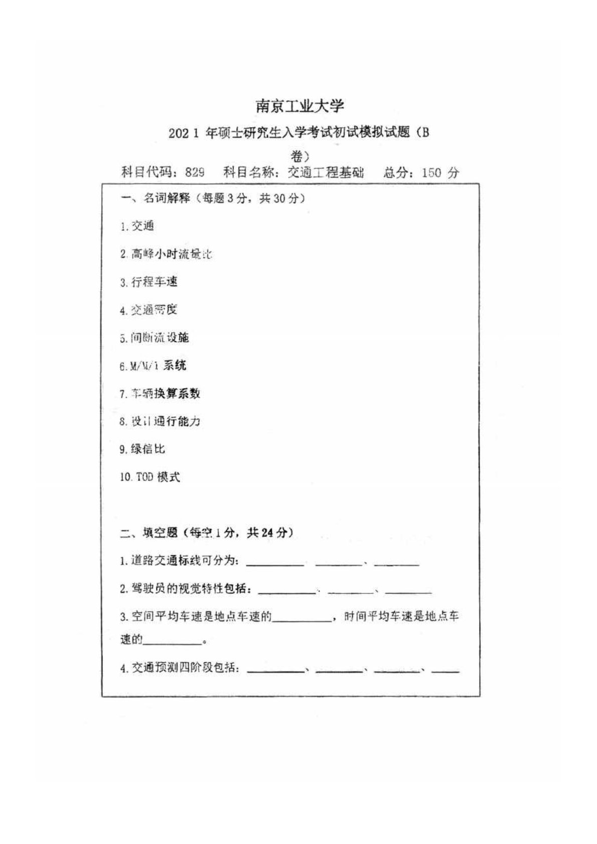 南京工业大学829交通工程基础2021年模拟真题B