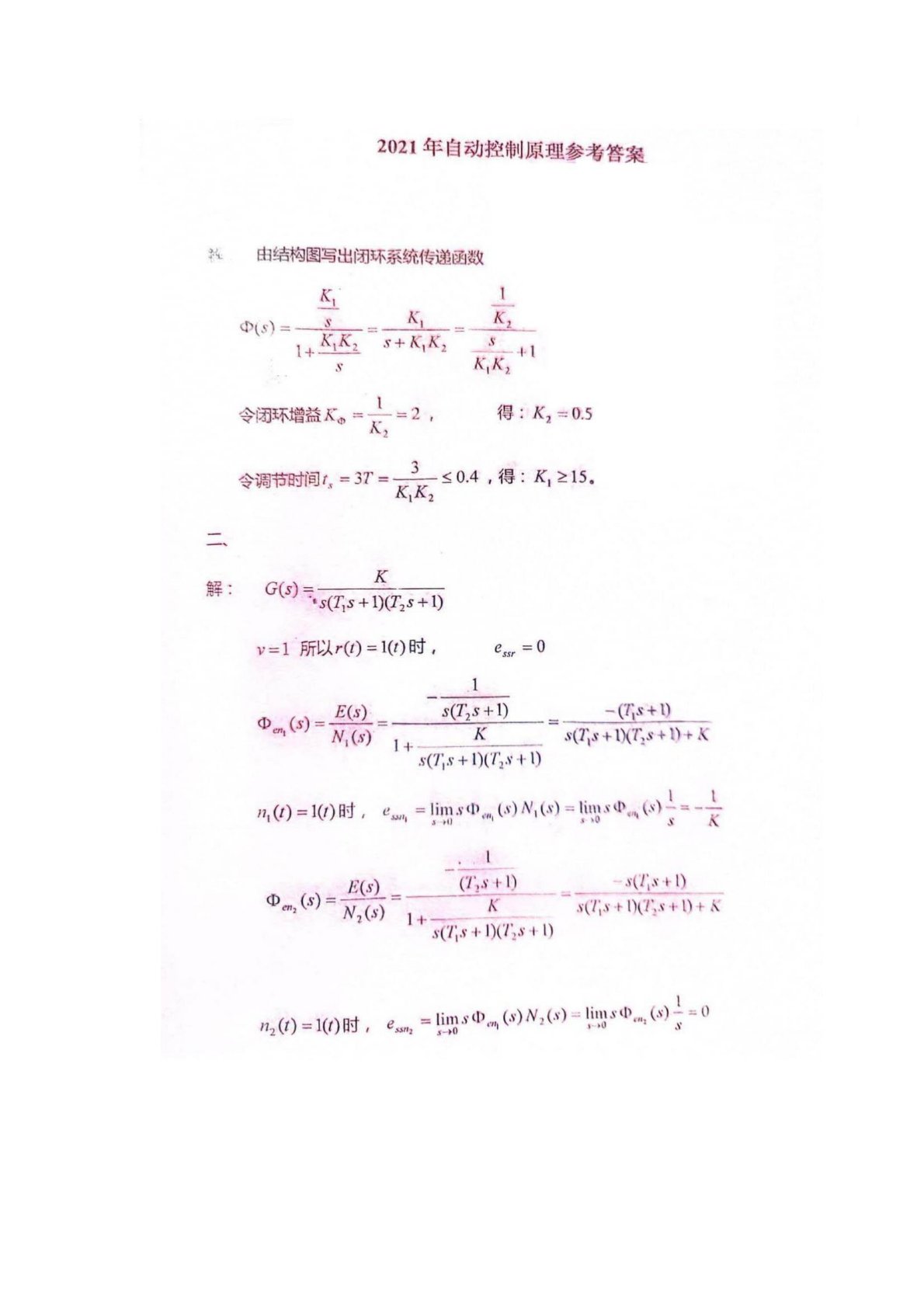 南京大学961自动控制原理(经典60%、现代40%)2021年真题答案手写版