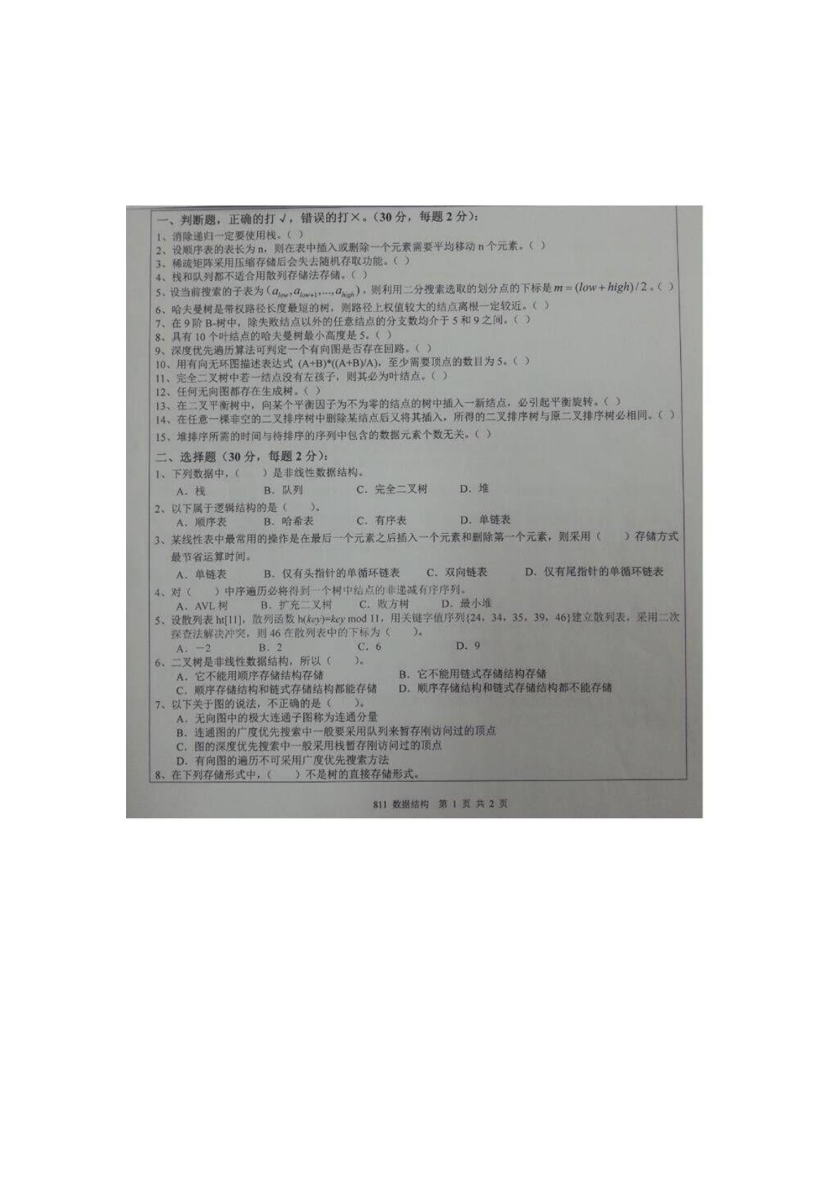 南京邮电大学811数据结构2016年真题1