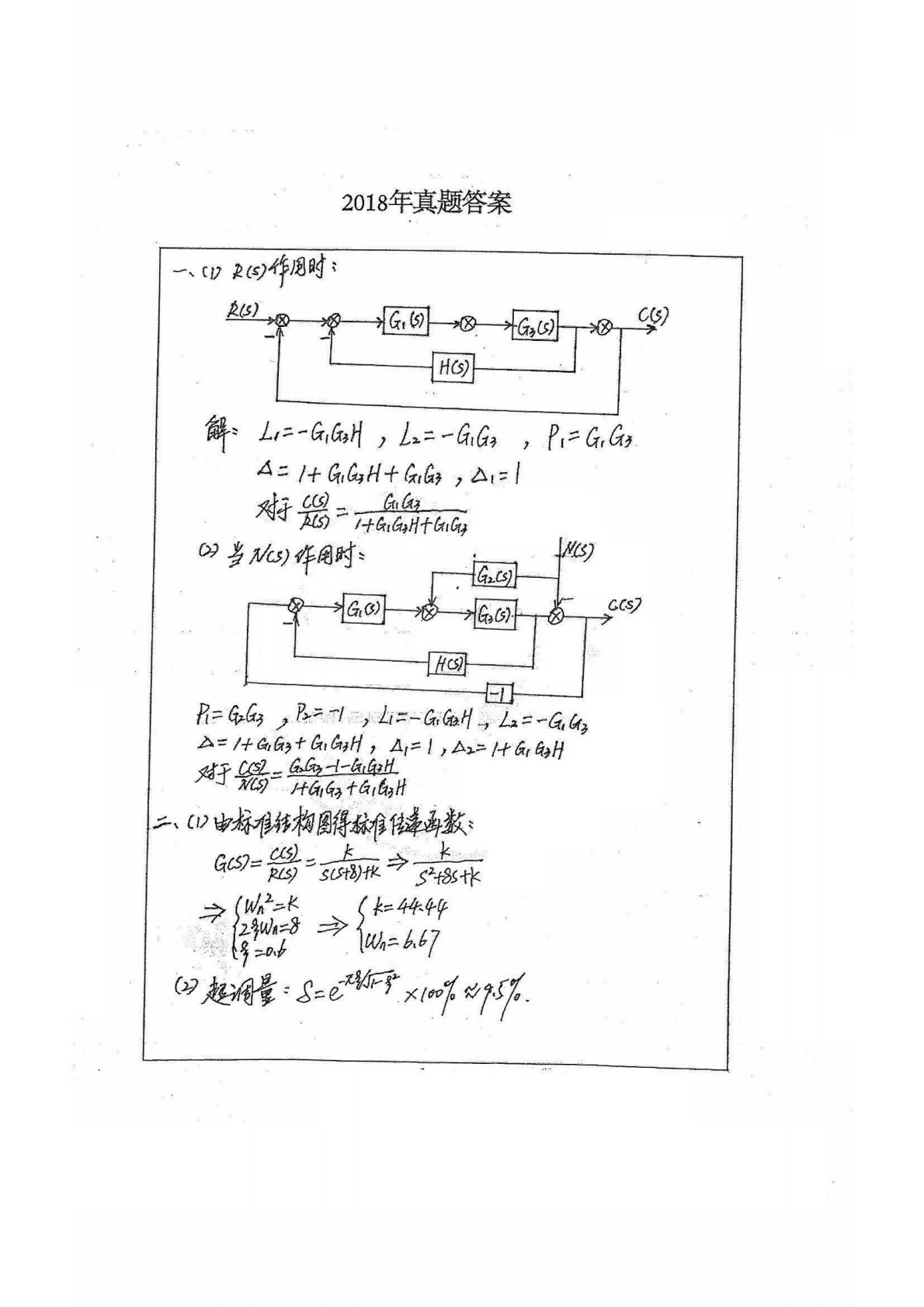 南京信息工程大学817自动控制原理2018年真题答案手写版