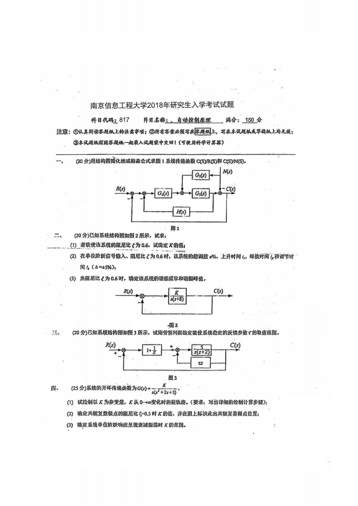 南京信息工程大学817自动控制原理2018年真题