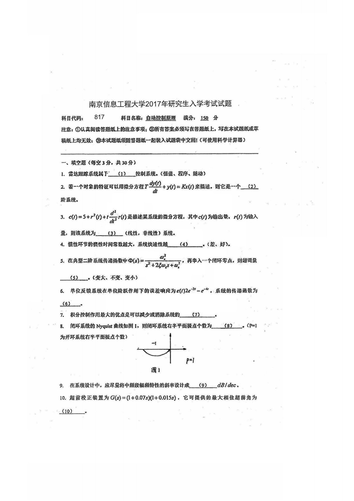 南京信息工程大学817自动控制原理2017年真题