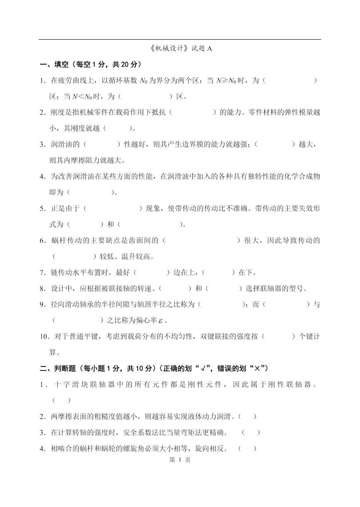 宁夏大学832机械原理及设计测试卷