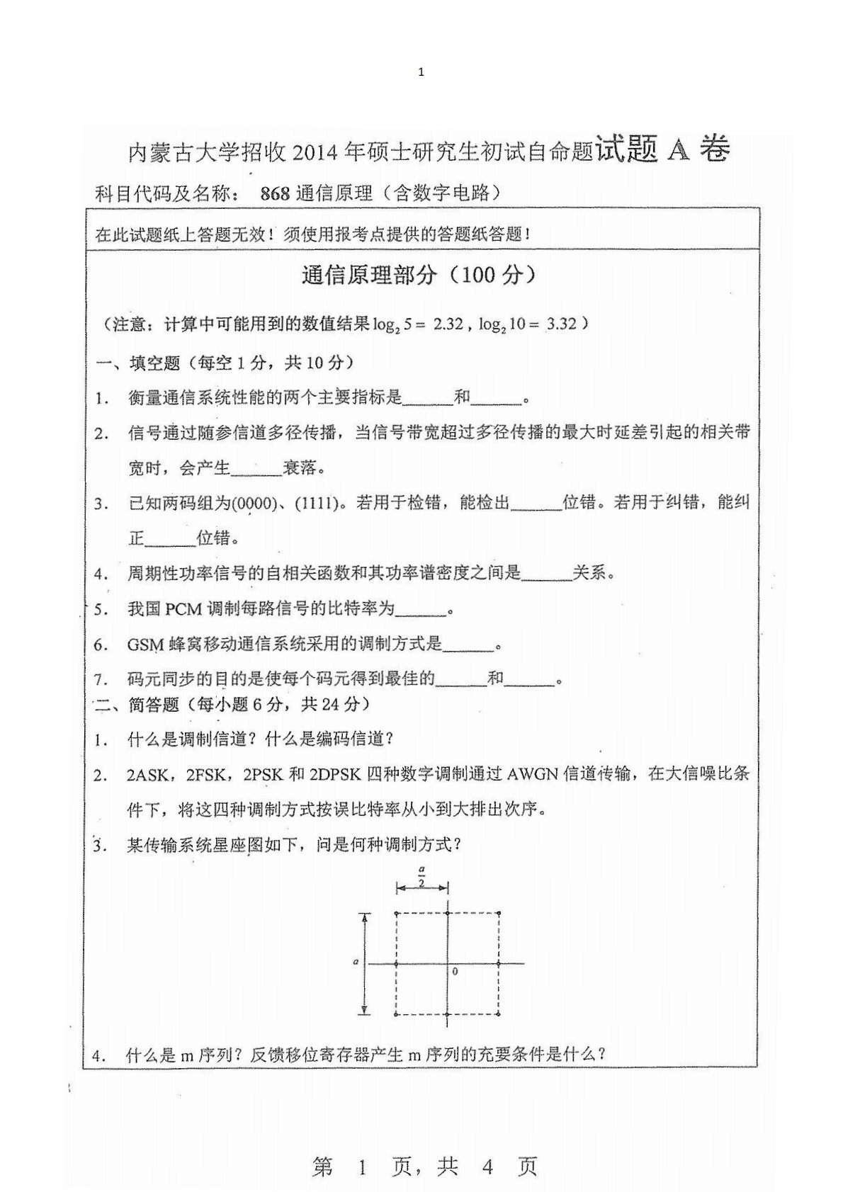 内蒙古大学869通信与系统2014年真题