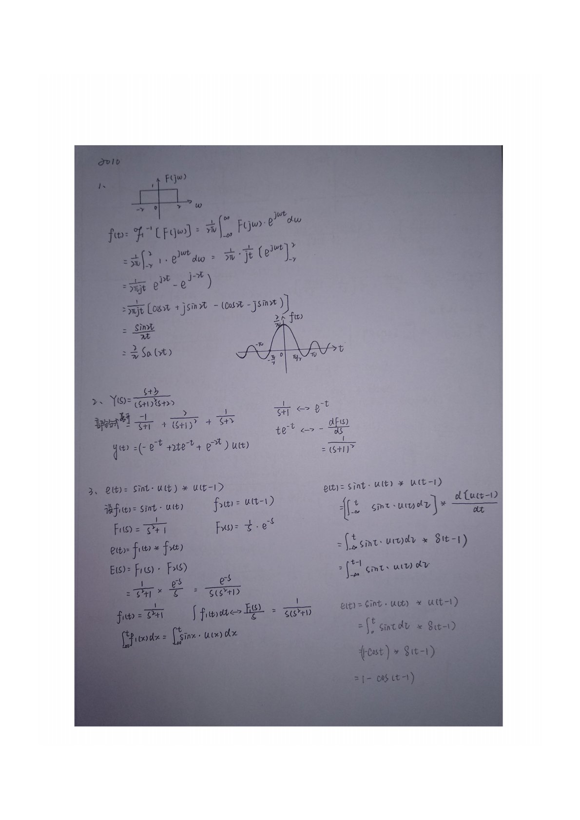 内蒙古大学869通信与系统2010年真题答案手写版