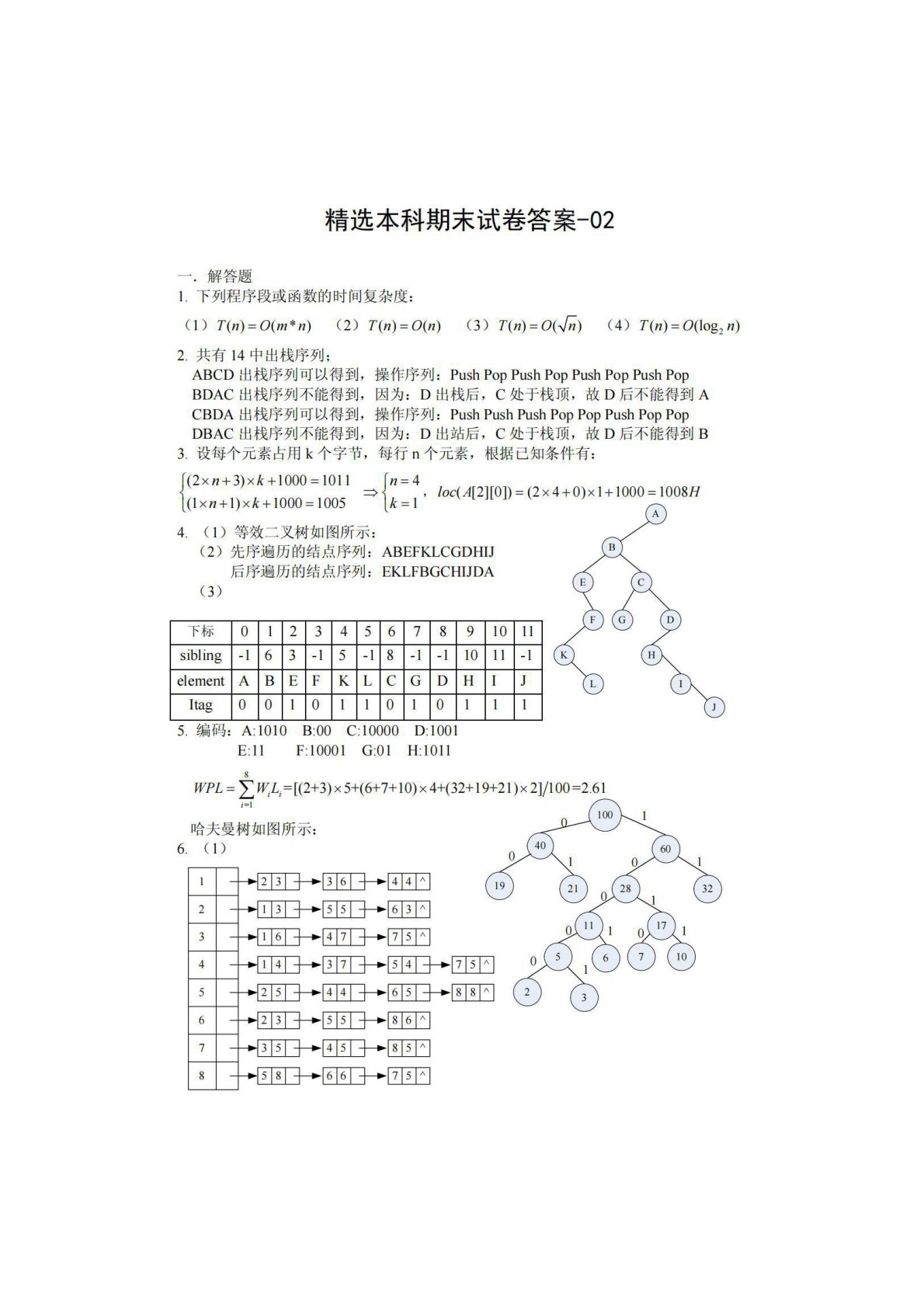 南京邮电大学811数据结构精选本科期末试卷答案2