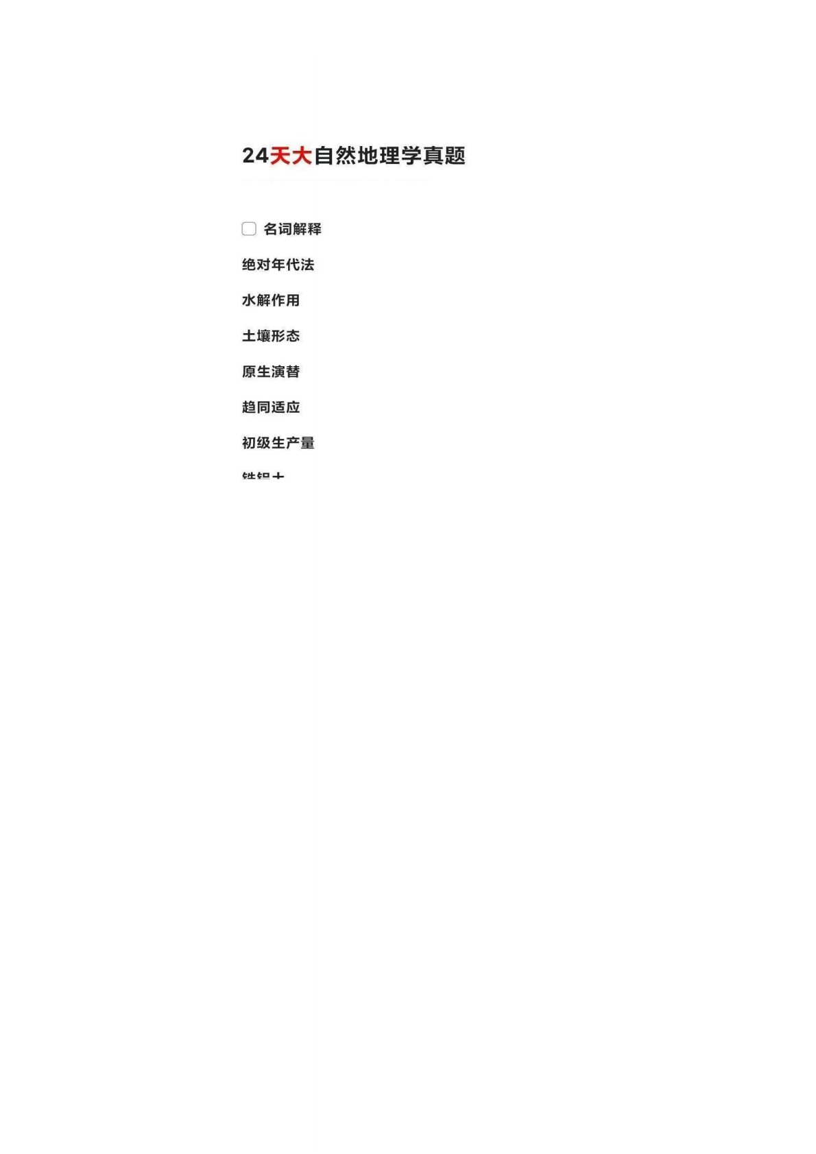 天津大学739自然地理学2024年真题(回忆版)
