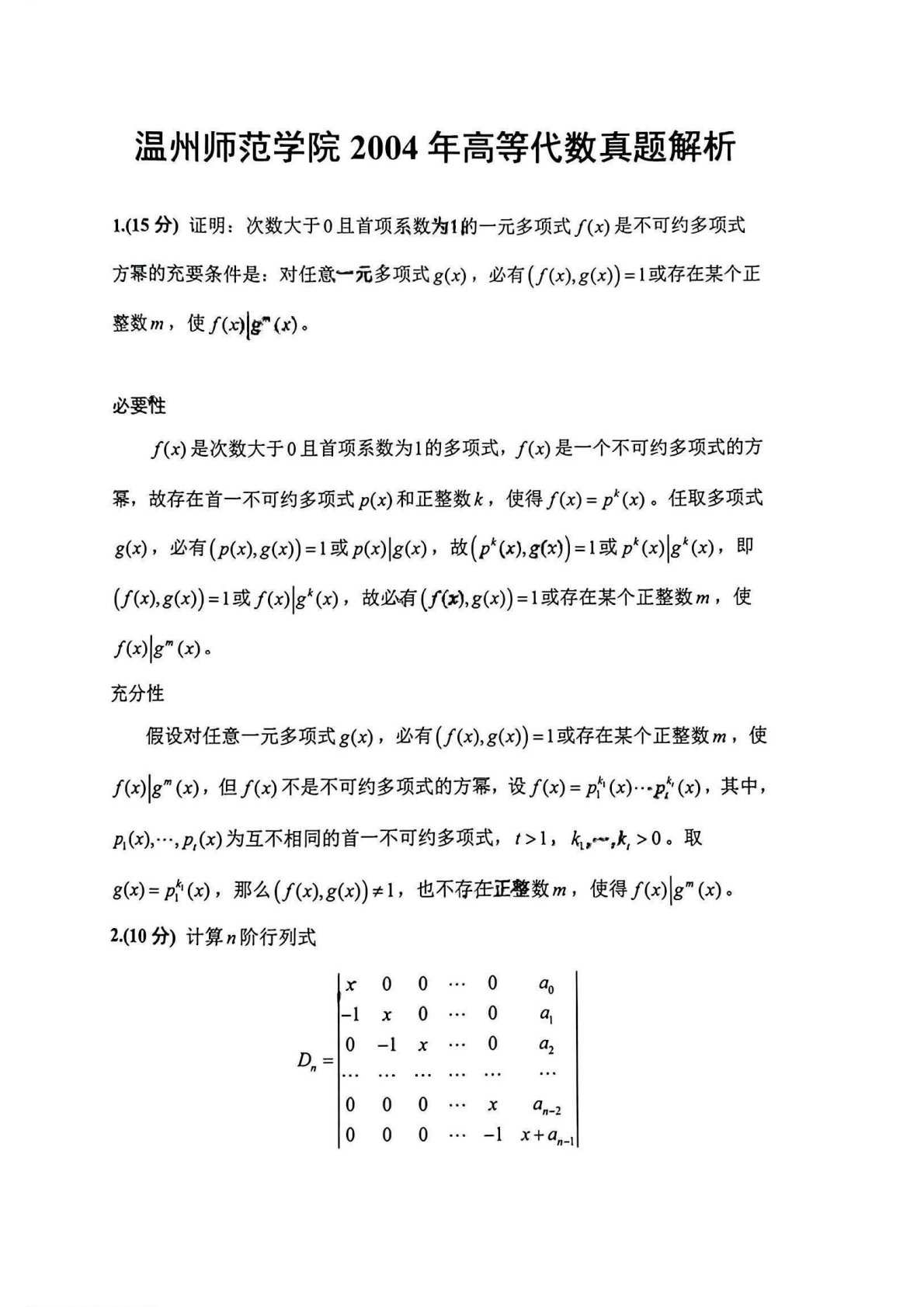 温州大学817高等代数2004年真题及答案