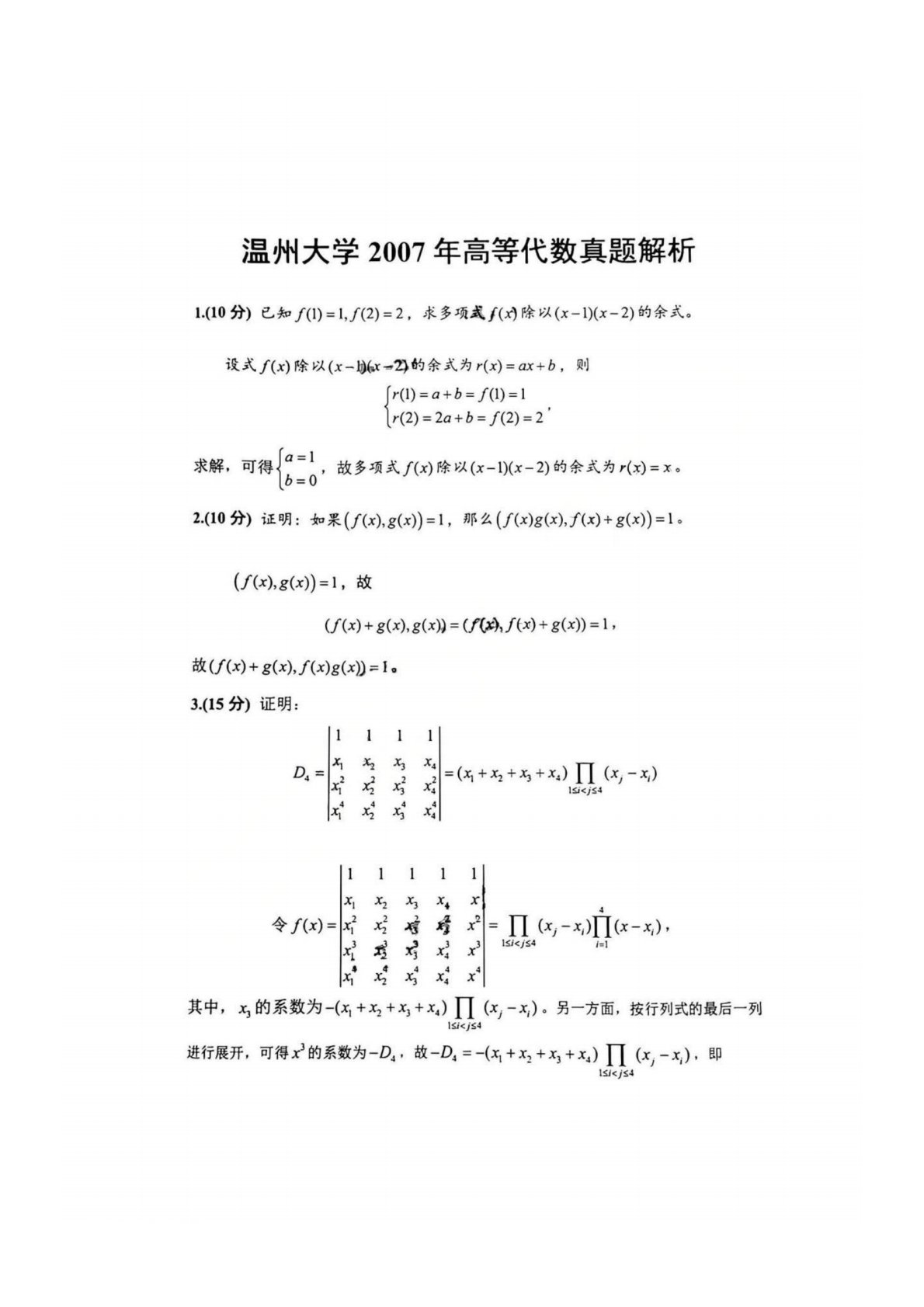 温州大学817高等代数2007年真题答案