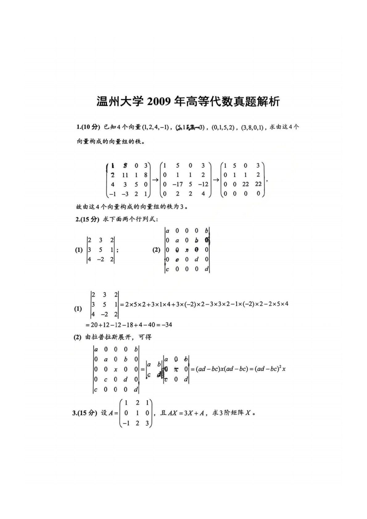温州大学817高等代数2009年真题答案