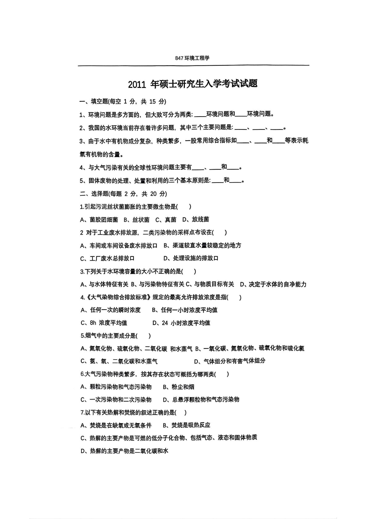 中国矿业大学(北京)847环境工程学2011年真题(回忆版)