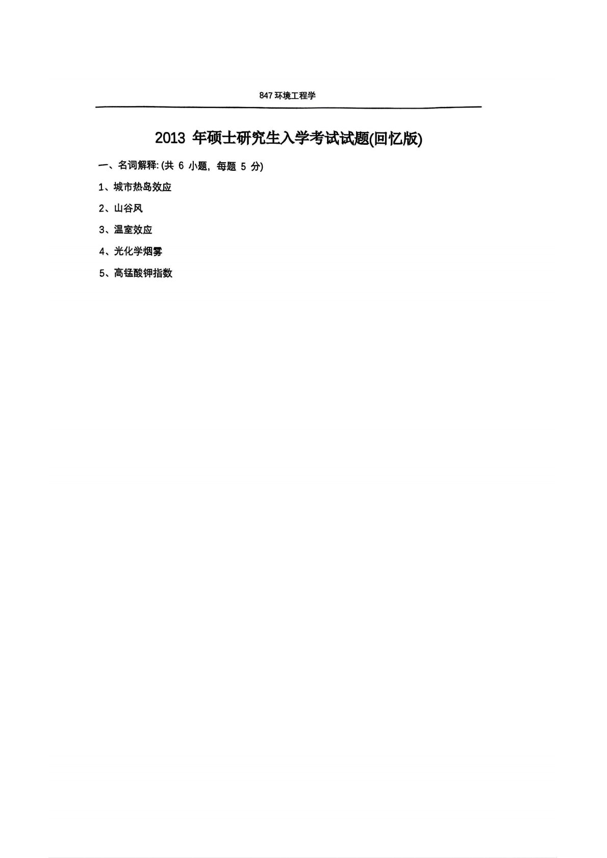 中国矿业大学(北京)847环境工程学2013年真题(回忆版)