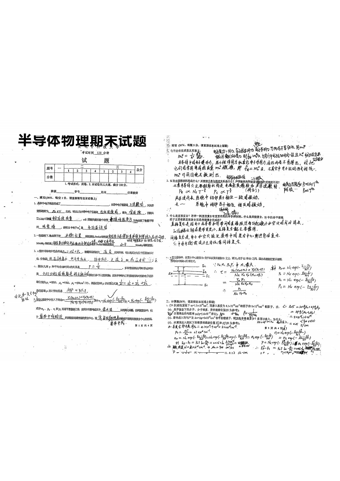 厦门大学877半导体物理与器件期末题合集.pdf