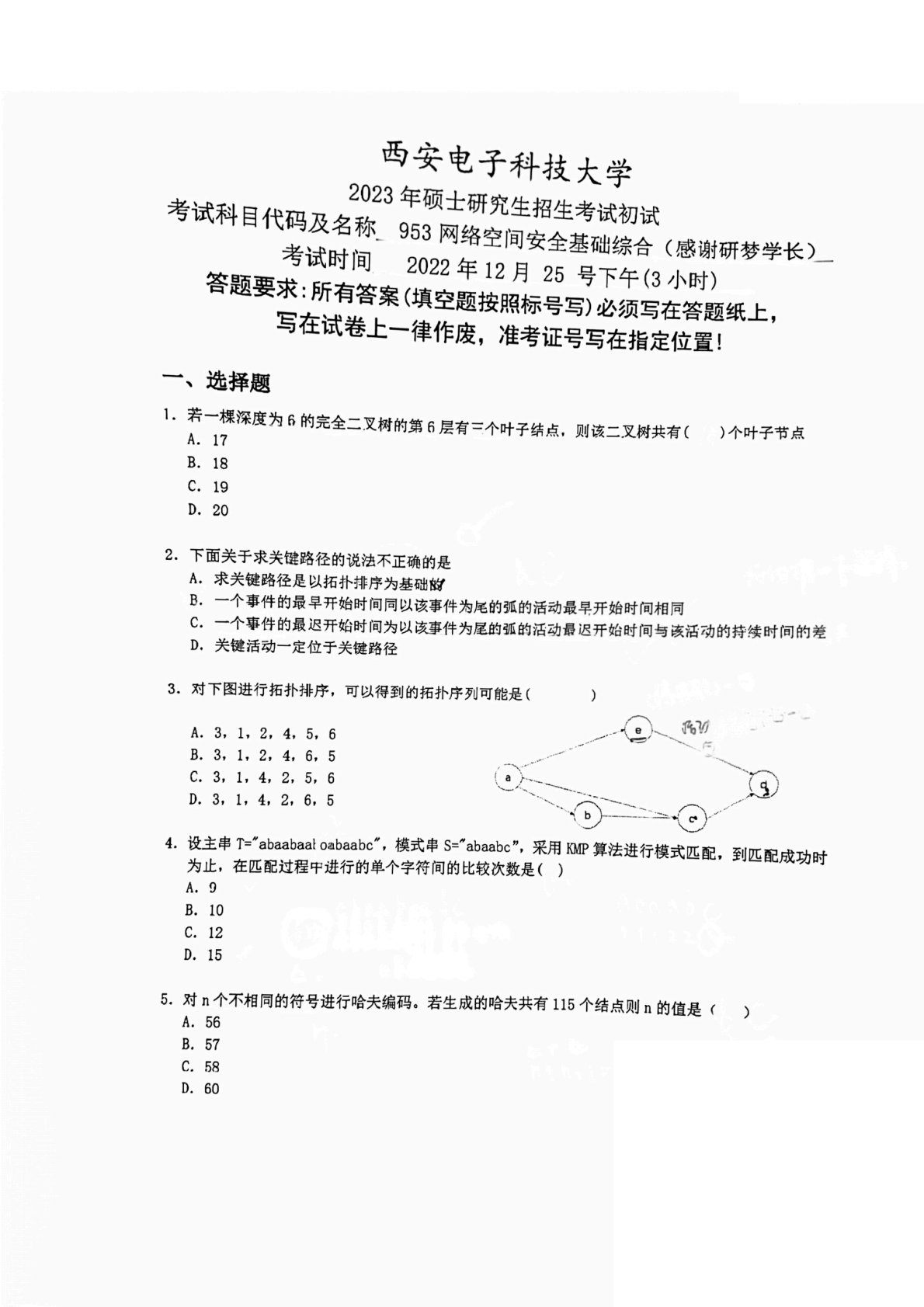 西安电子科技大学893网络空间安全基础综合2023年真题