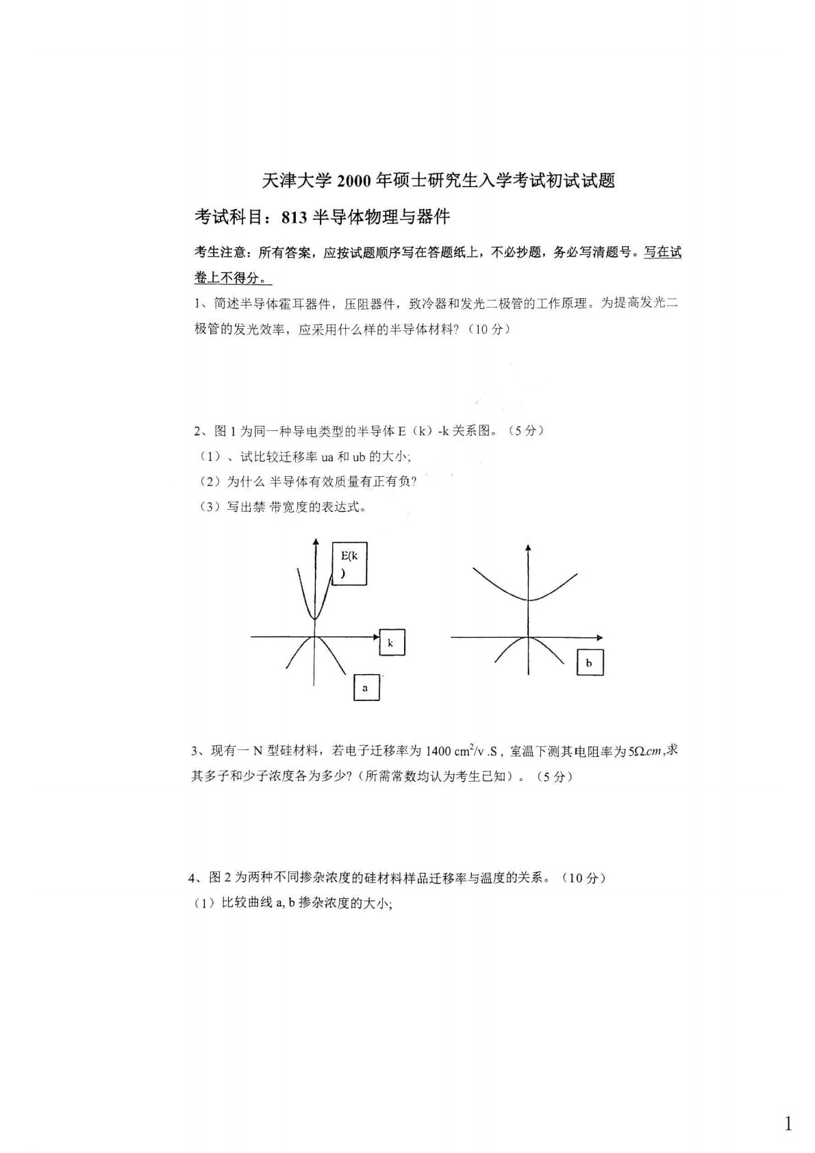 天津大学813半导体物理与器件2000年真题