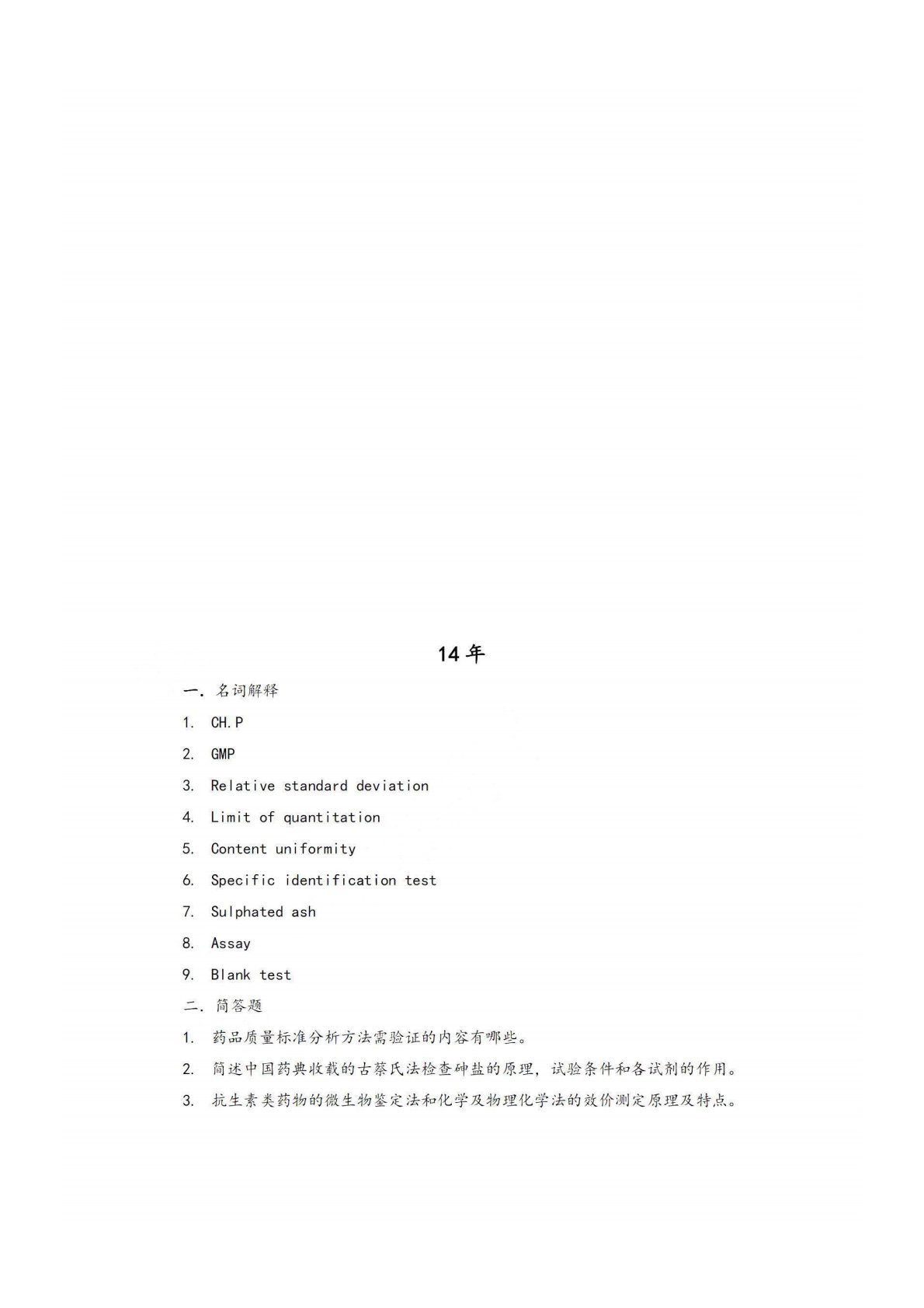 西安交通大学药物分析学2014年复试真题