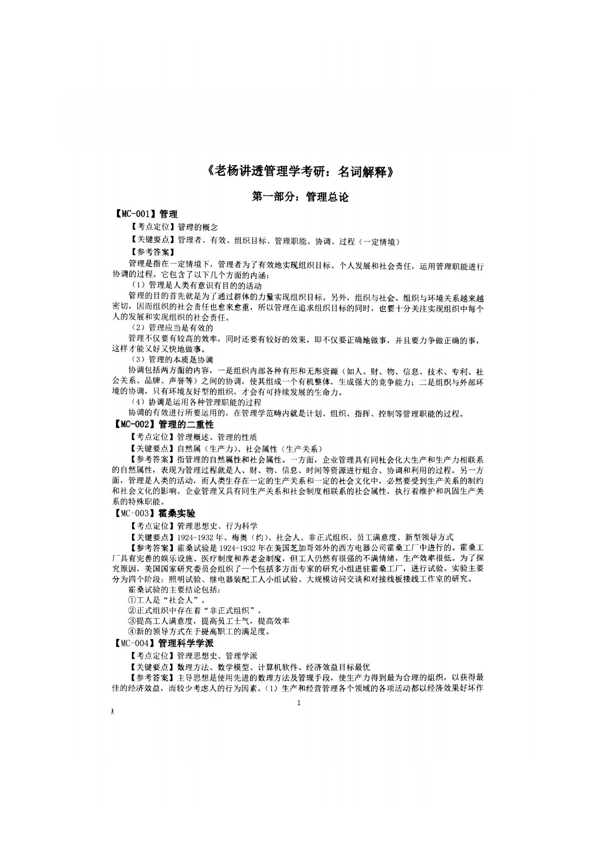 西南大学821管理学名词解释100题