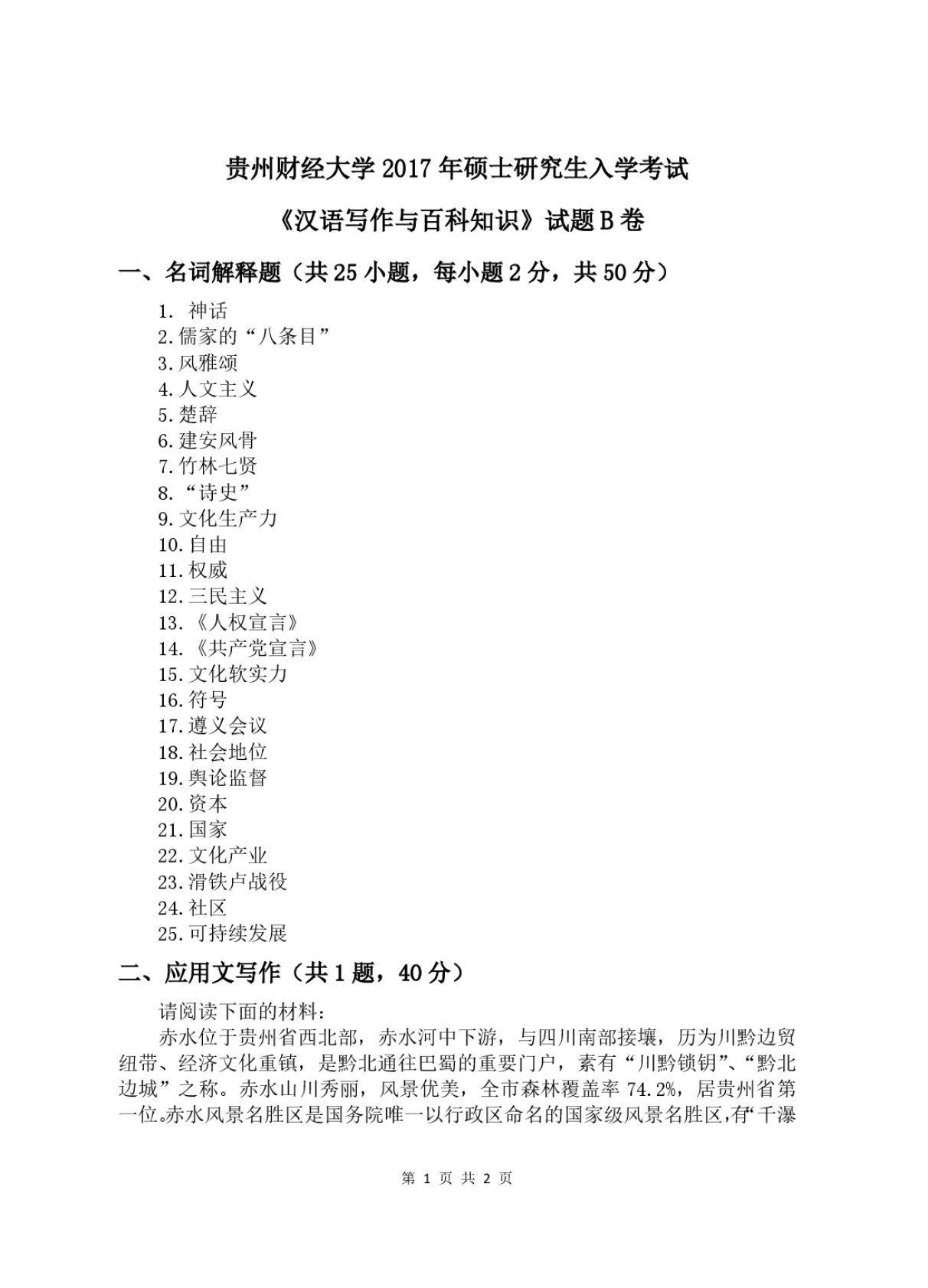 贵州财经大学448汉语写作与百科知识2017年真题B卷