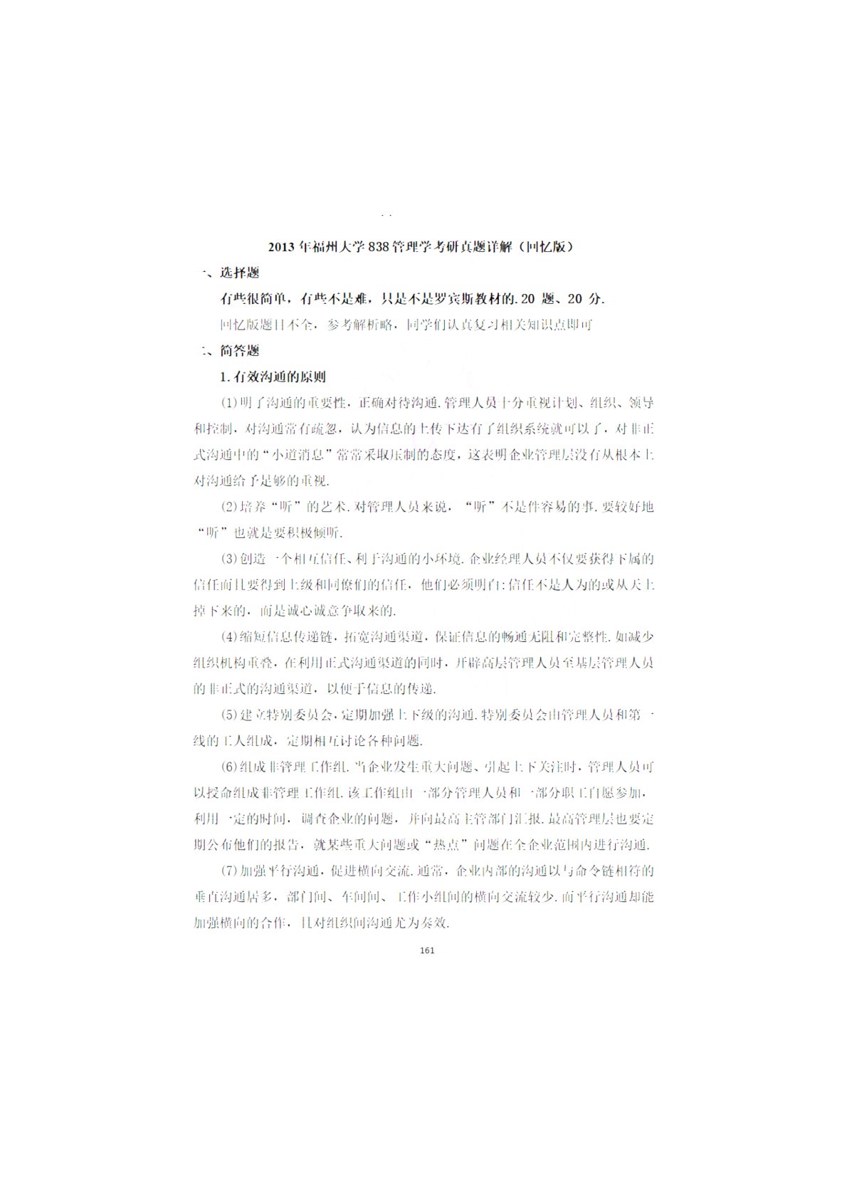 福州大学838管理学综合2013年真题回忆版答案
