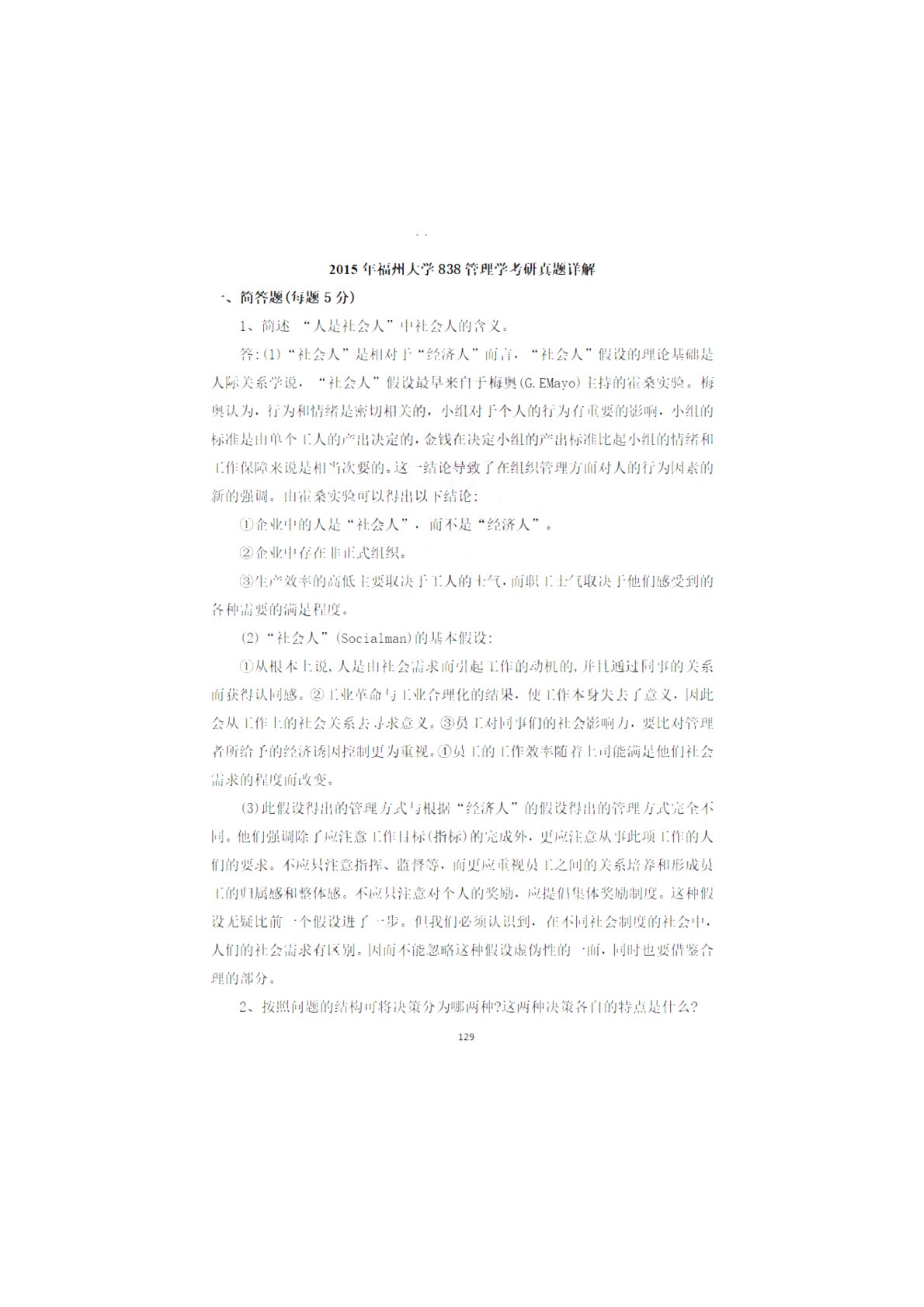 福州大学838管理学综合2015年真题答案