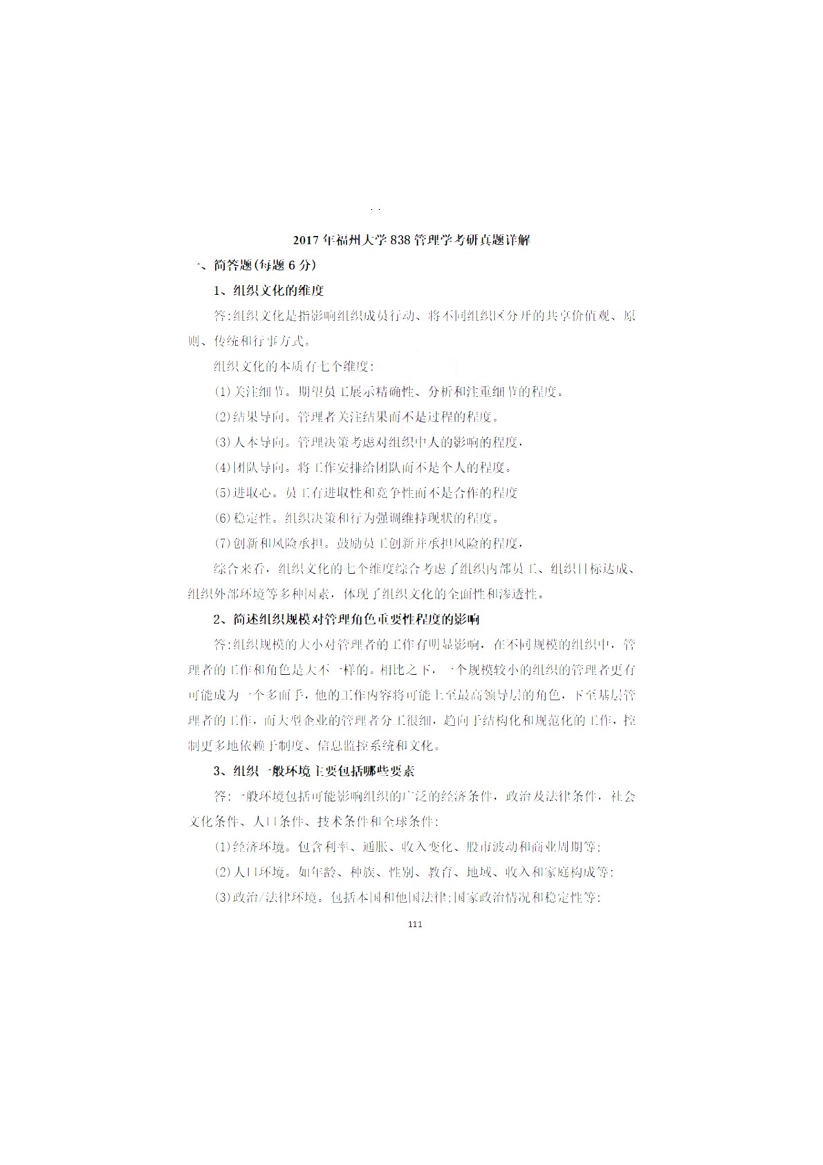 福州大学838管理学综合2017年真题答案