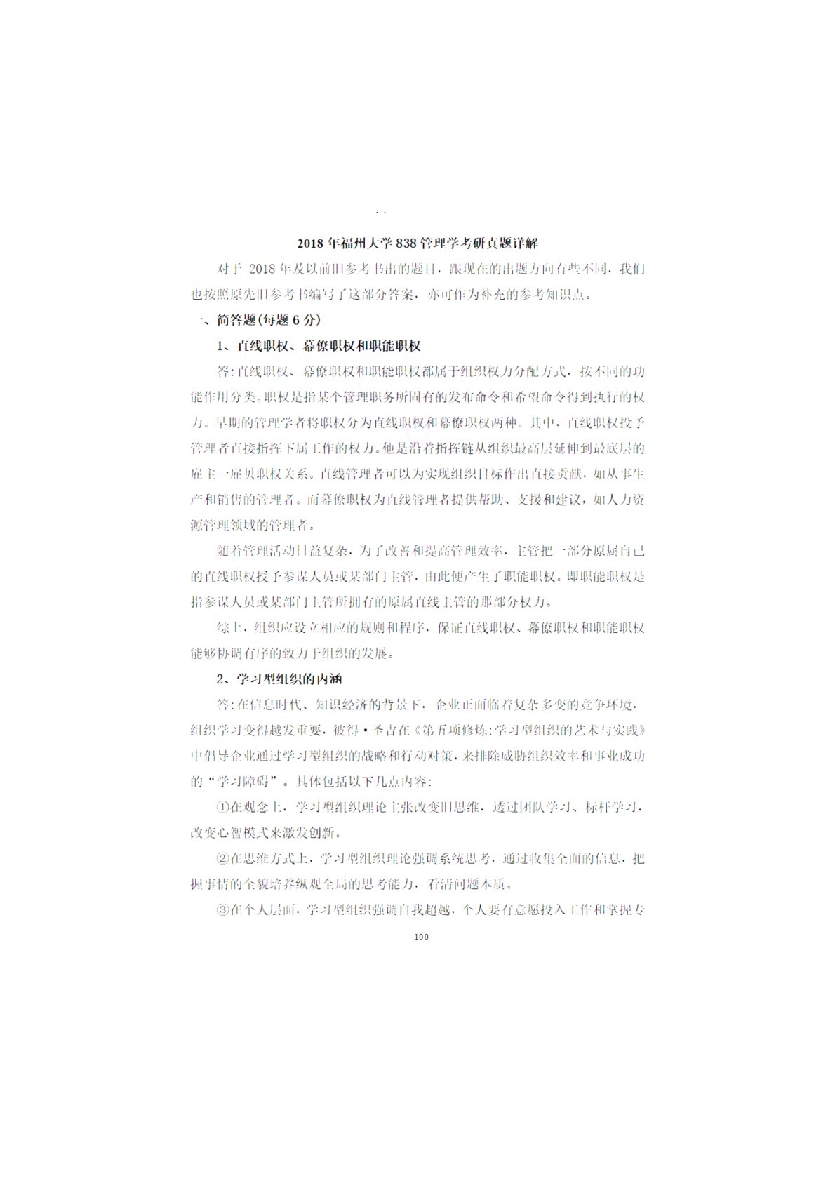 福州大学838管理学综合2018年真题答案