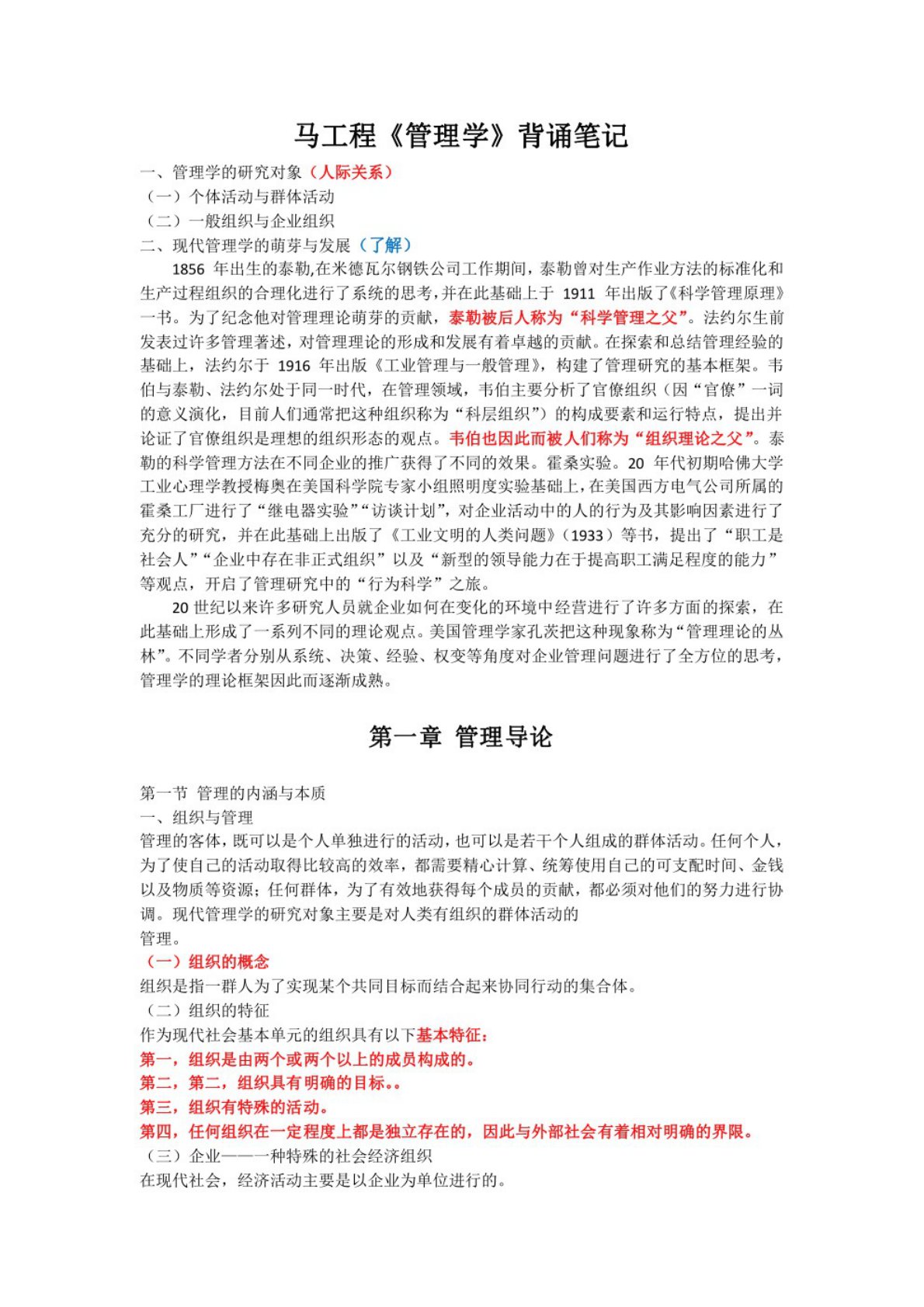 福州大学838管理学综合背诵笔记