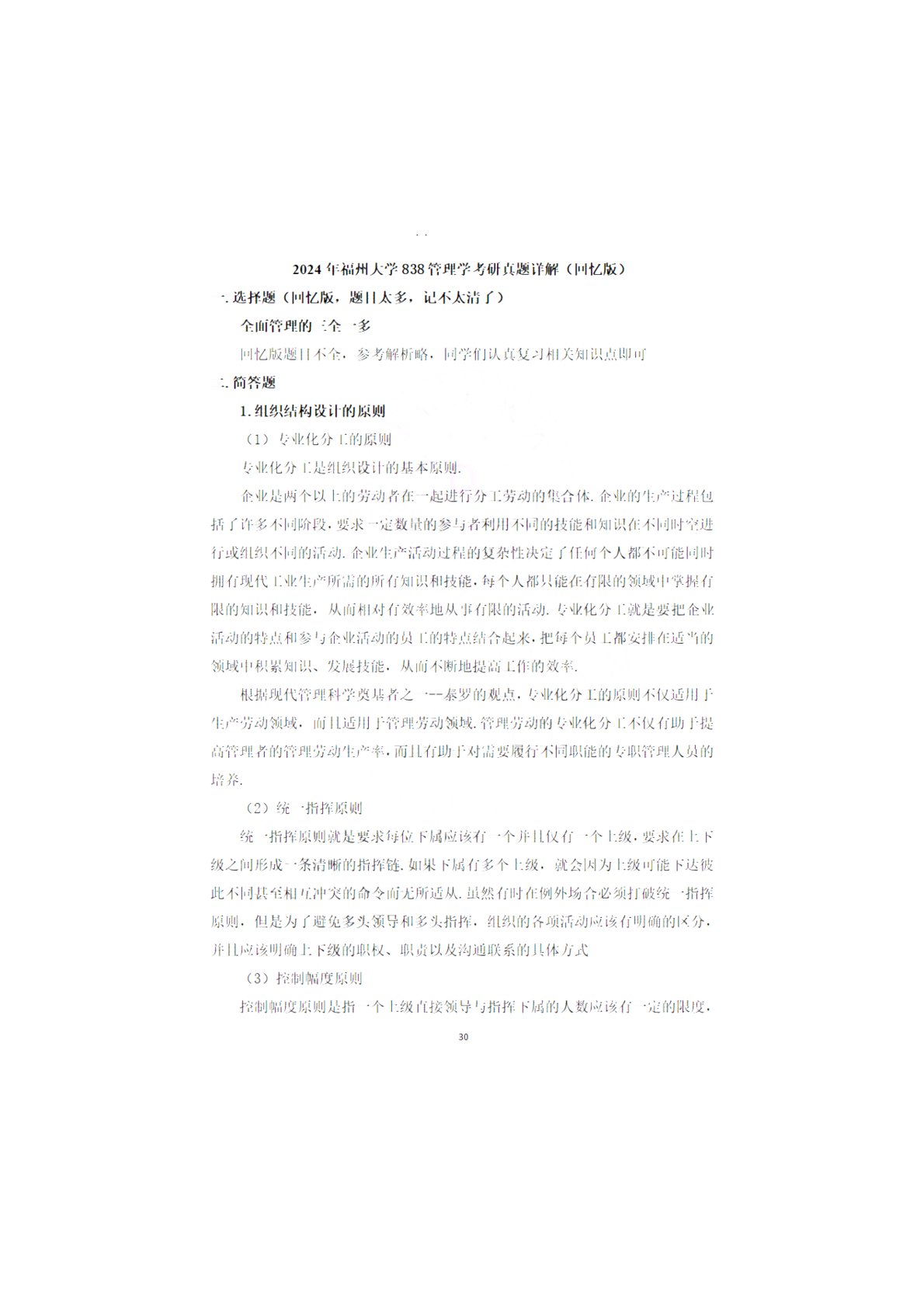福州大学838管理学综合2024年真题回忆版答案