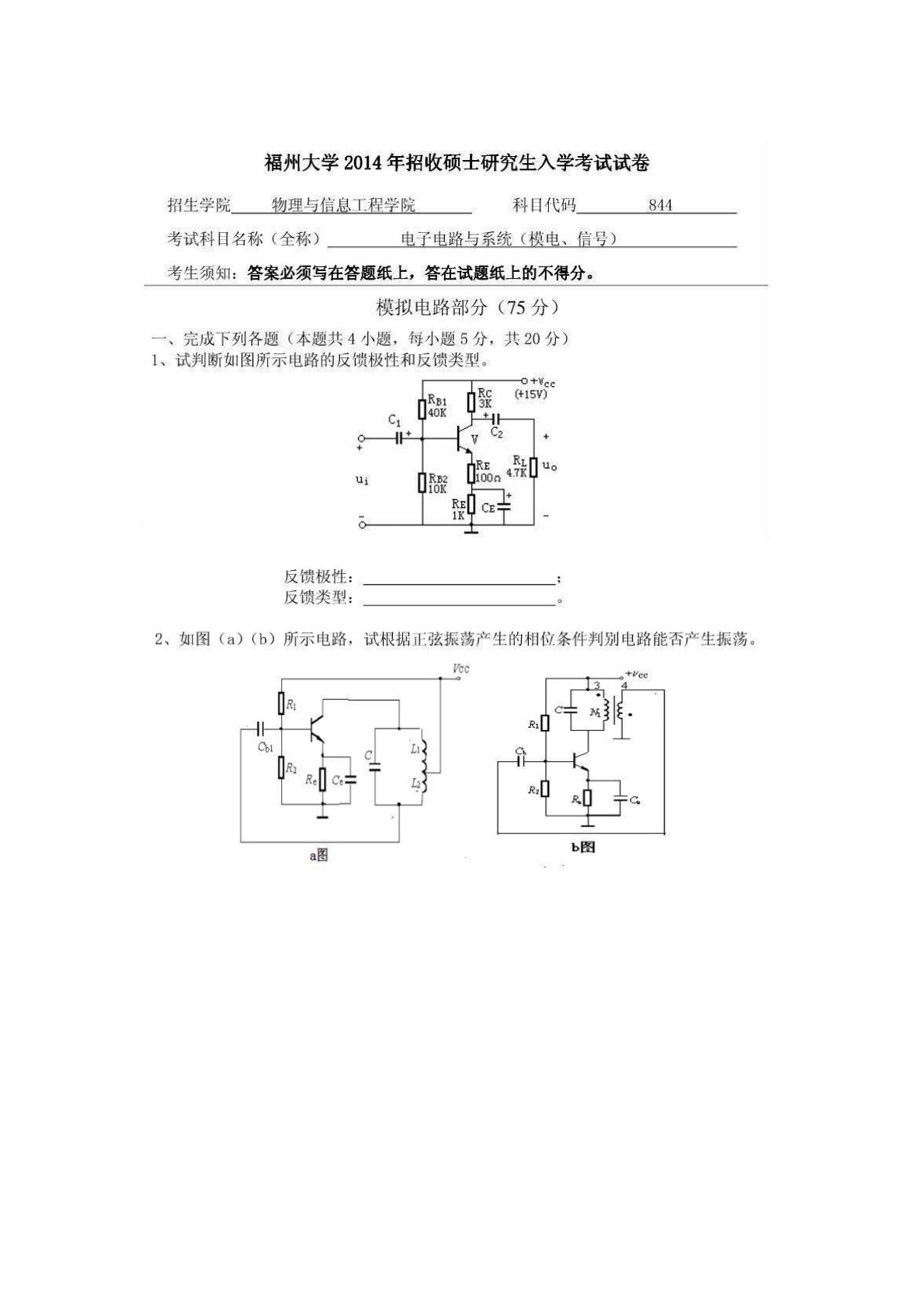 福州大学866信号与系统电子电路与系统试卷