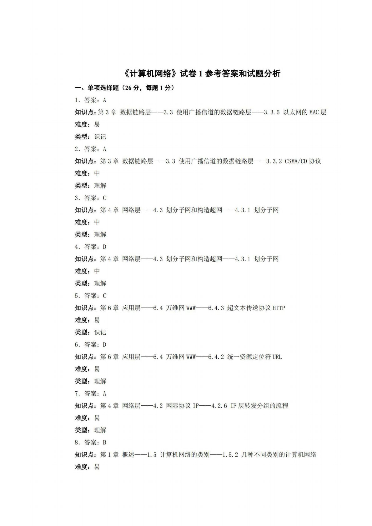广西师范大学806计算机专业综合(含数据结构和计算机网络)试卷1答案