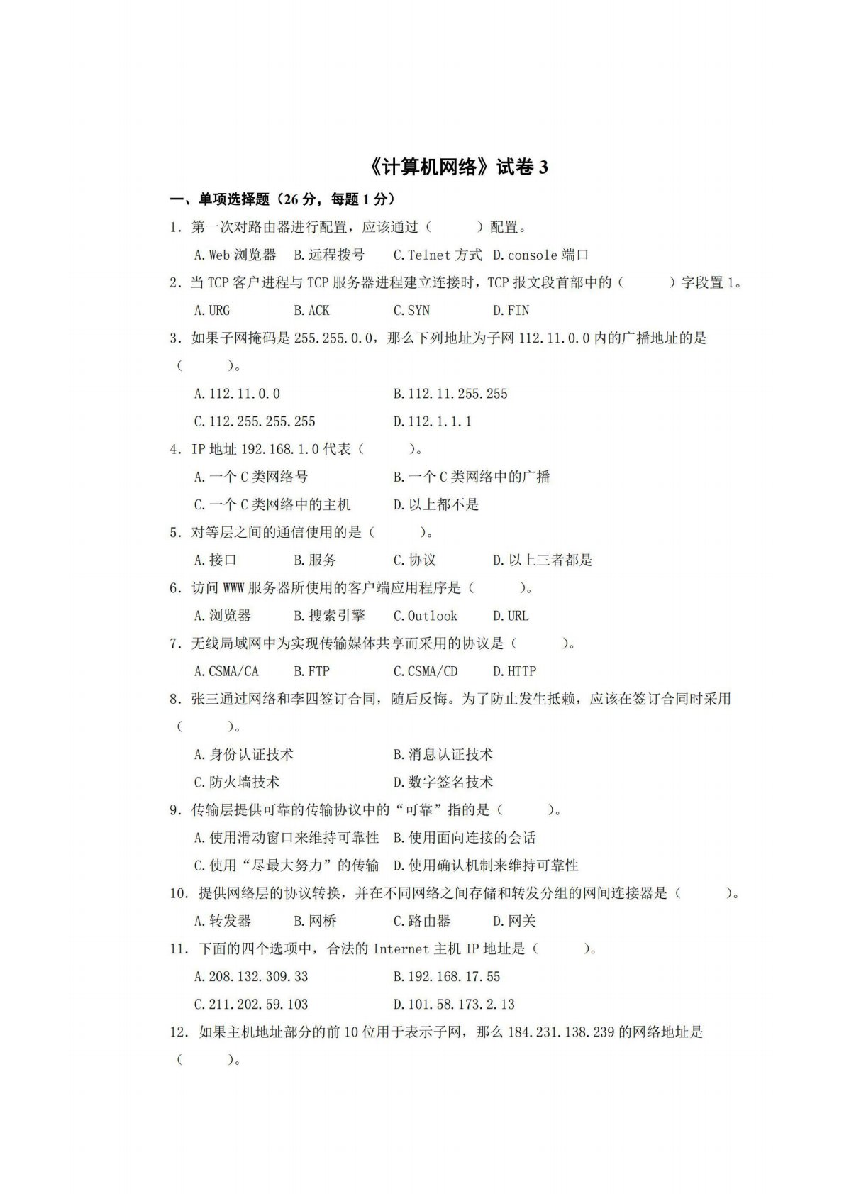 广西师范大学806计算机专业综合(含数据结构和计算机网络)试卷3