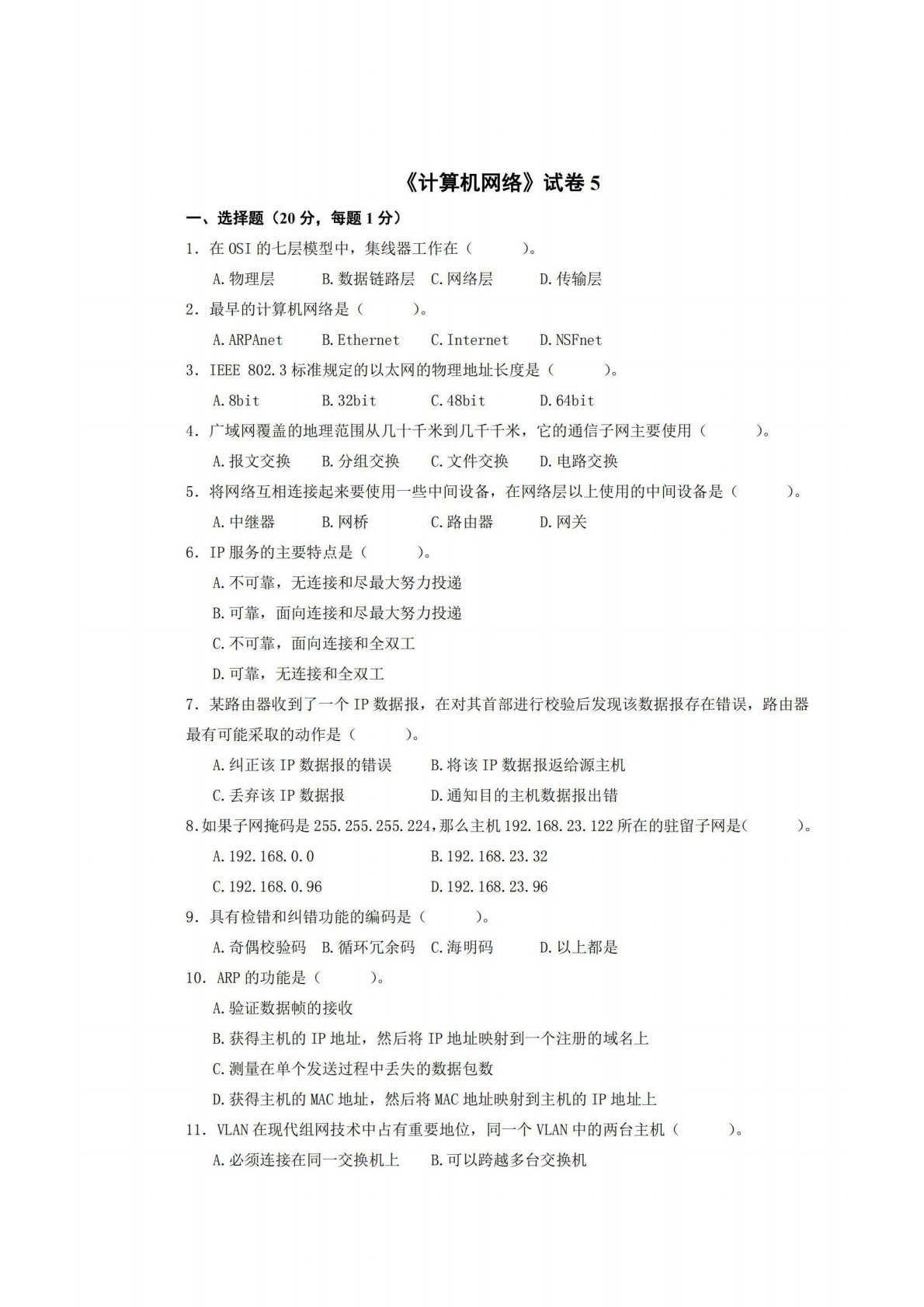 广西师范大学806计算机专业综合(含数据结构和计算机网络)试卷5