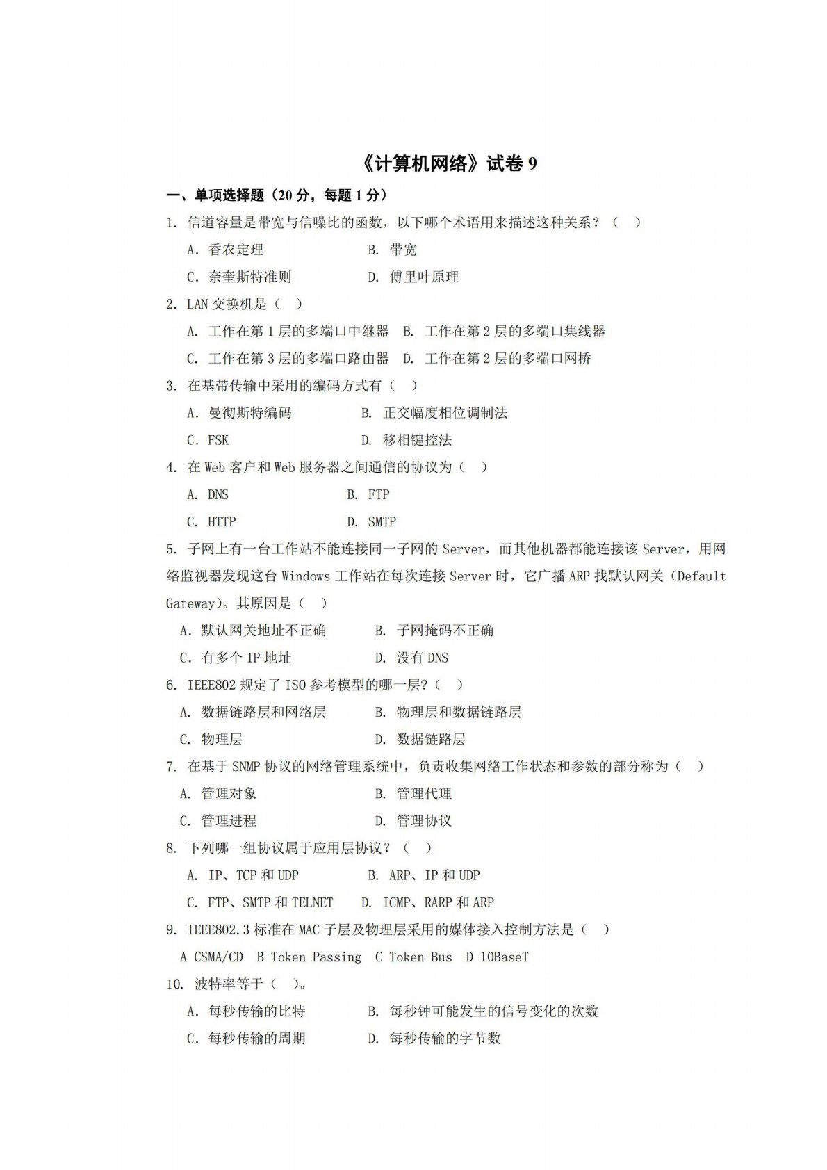 广西师范大学806计算机专业综合(含数据结构和计算机网络)试卷9
